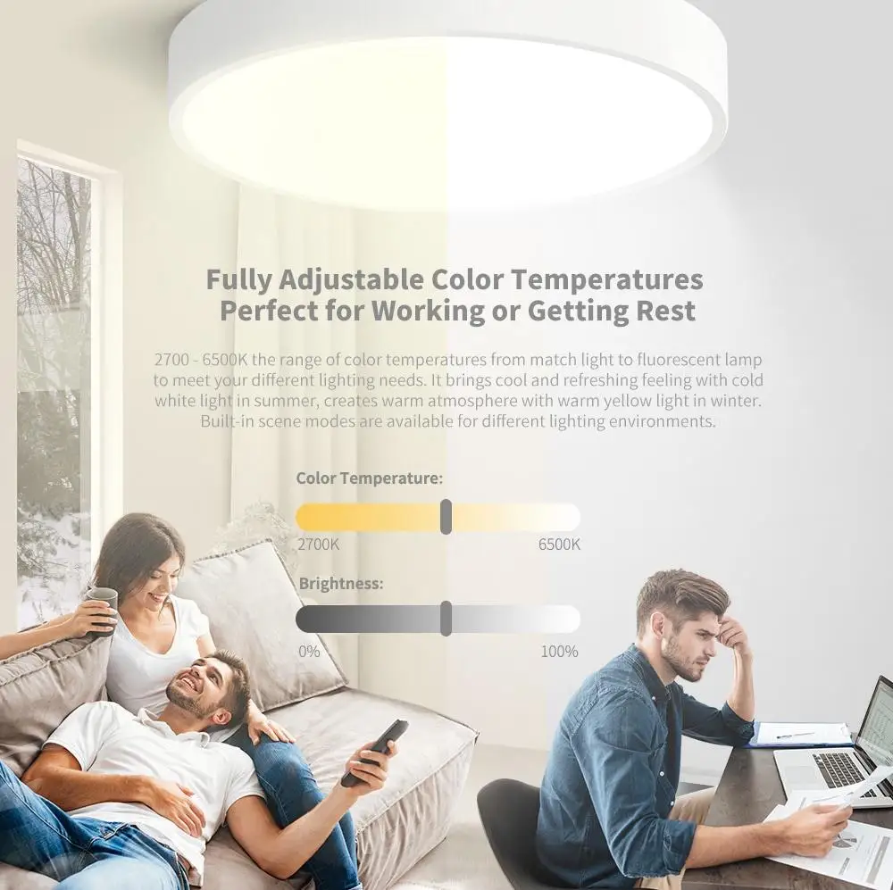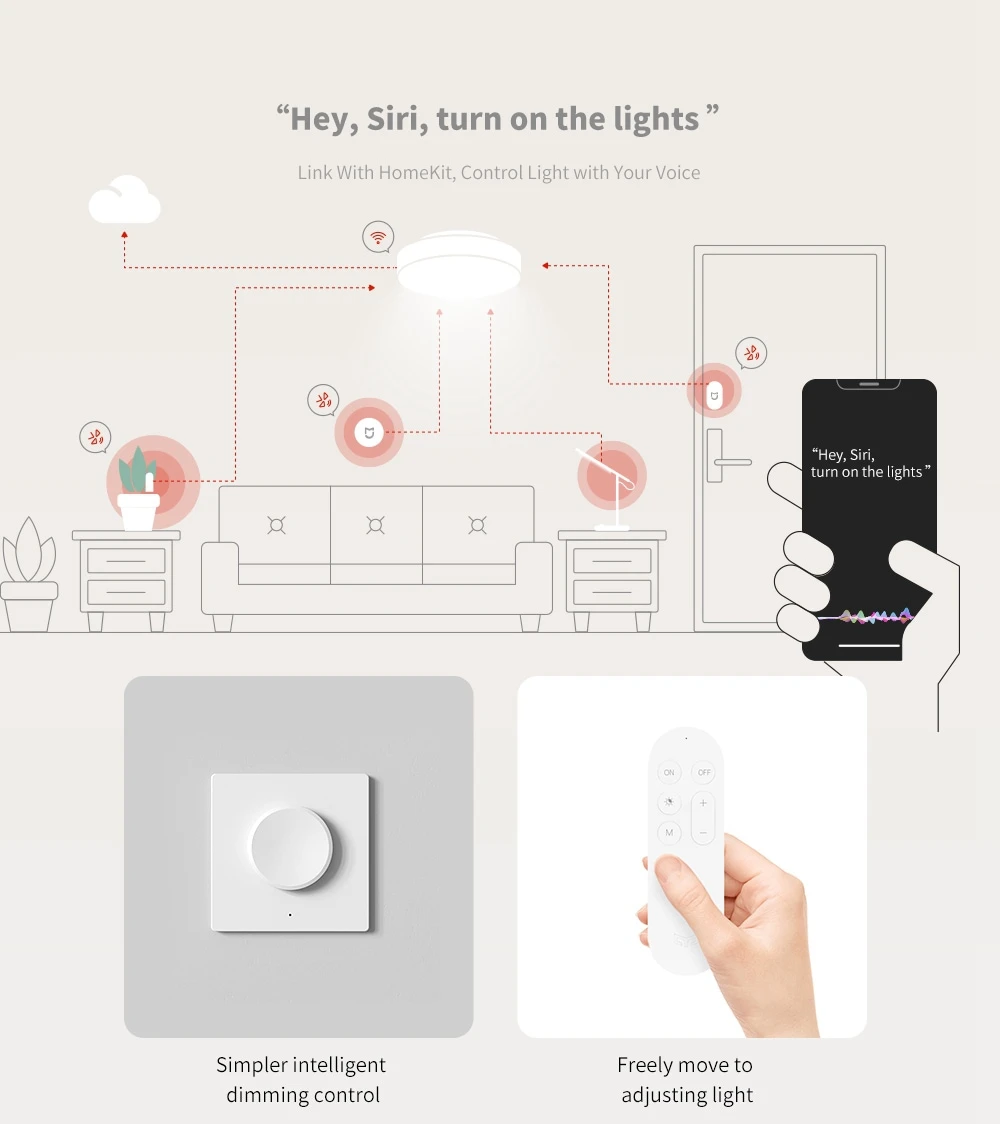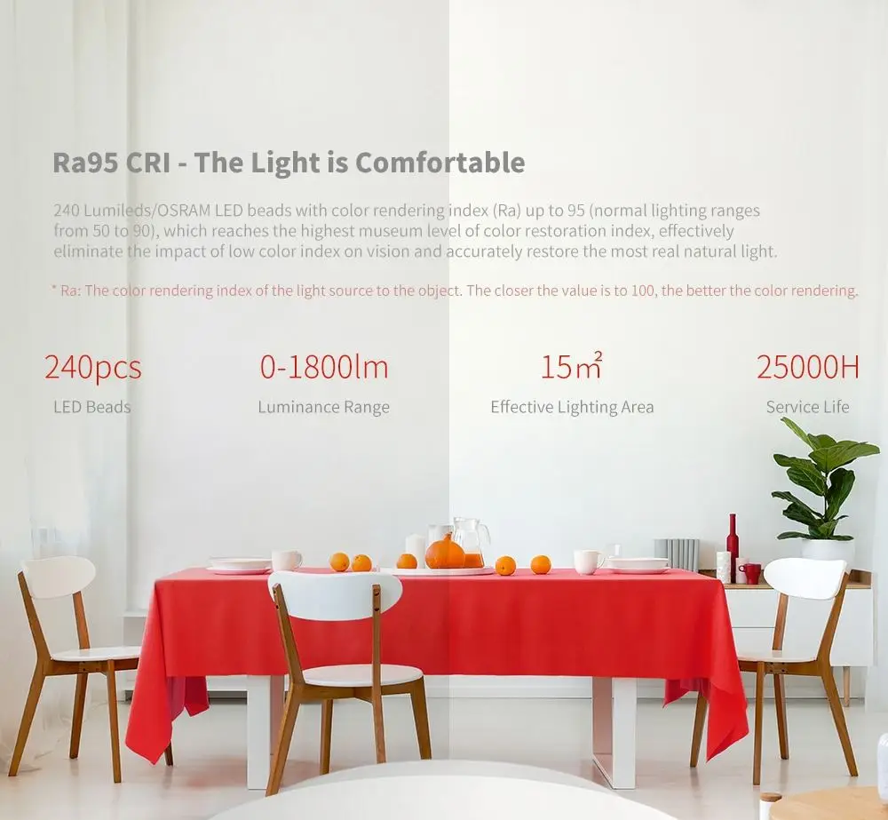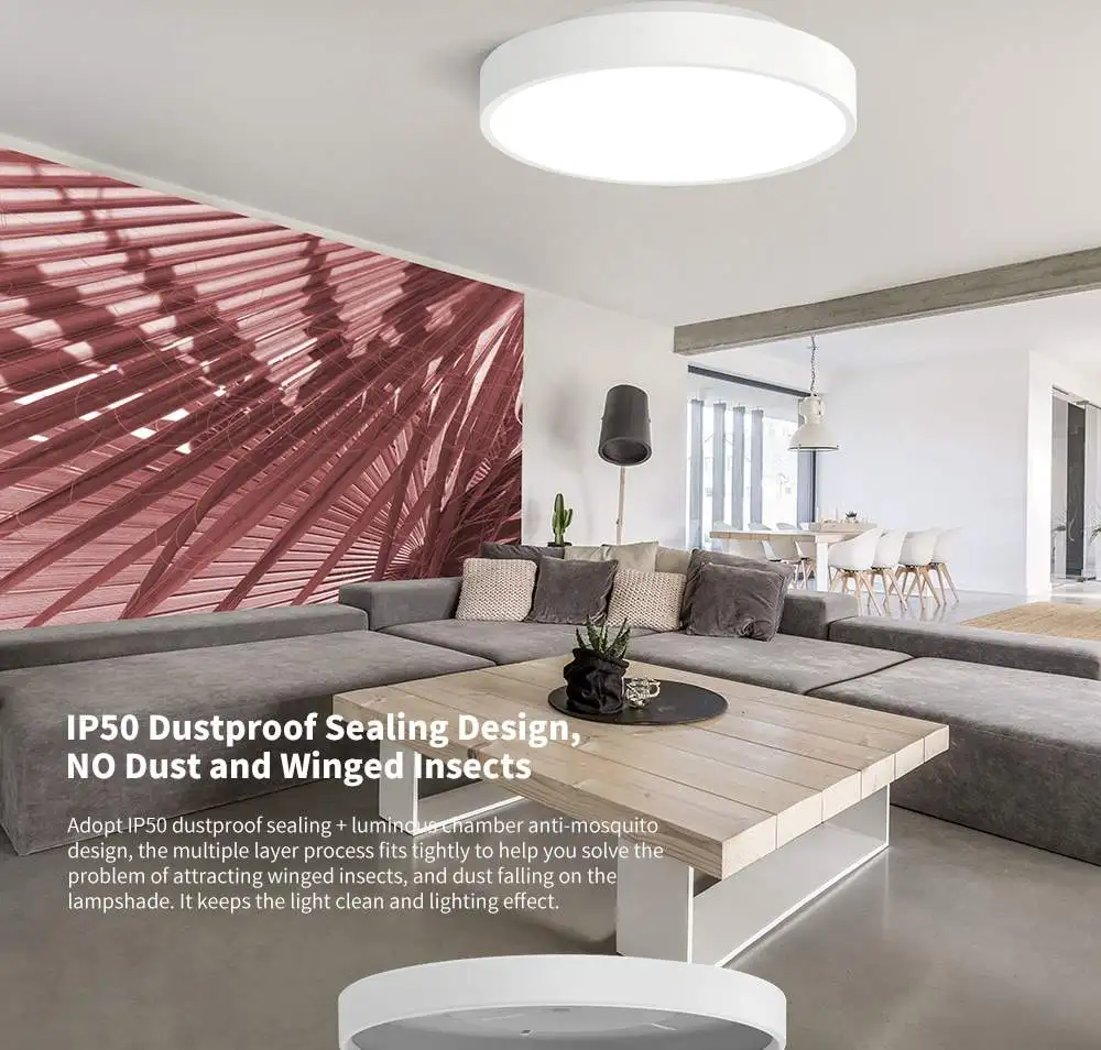 Yee light YLXD41YL умный светодиодный потолочный светильник с поддержкой голосового управления, который может работать с HomeKit и приложением Yee светильник для управления светильник Том. Можно включать/выключать свет, не вставая. Встроенный модуль Wi-Fi и Bluetooth позволяет дистанционно управлять статусами светильник из любой точки мира. Большие диапазоны цветовой температуры могут быть отрегулированы по вашему запросу, мягкая яркость для заботы о ваших глазах. Умсветильник дарит вам новый опыт дома.