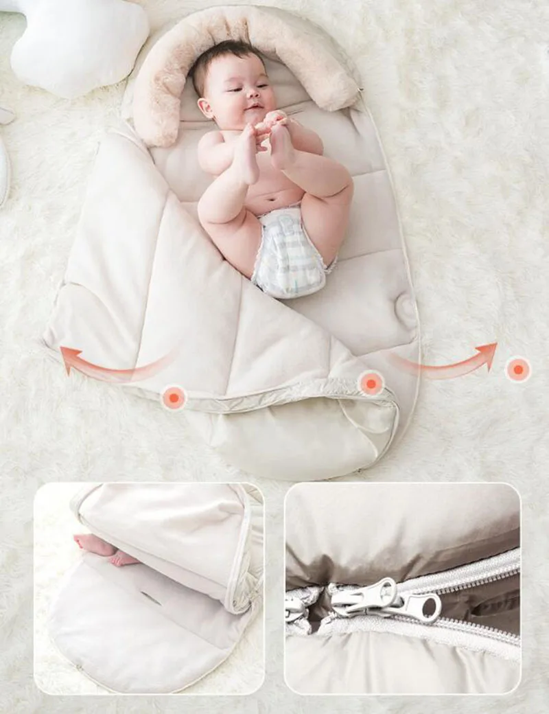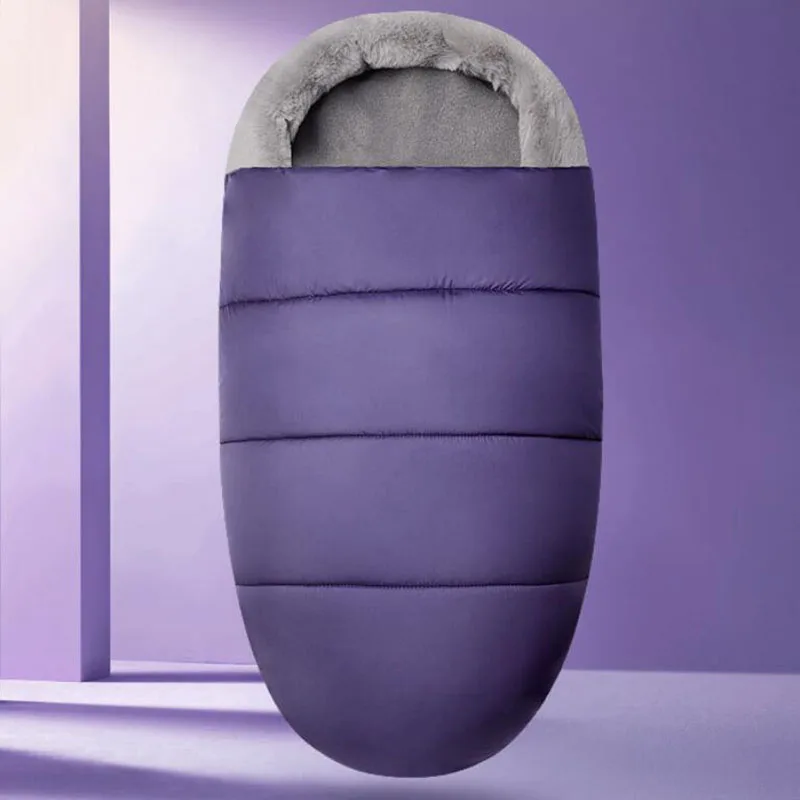 Материал без резины, очень теплый и морозостойкий, идеально подходит для зимы Дизайн: плотный зимний спальный мешок, дизайн с капюшоном, всесторонняя защита, теплый и восхитительный; Внутри или снаружи, все без проблем 4 цвета: коричневый, фиолетовый, бежевый, красный Возраст: для детей 0-12 месяцев; Унисекс; Съемный меховой воротник Посылка включает в себя: 1 спальный мешок Размер: 92*48 см
