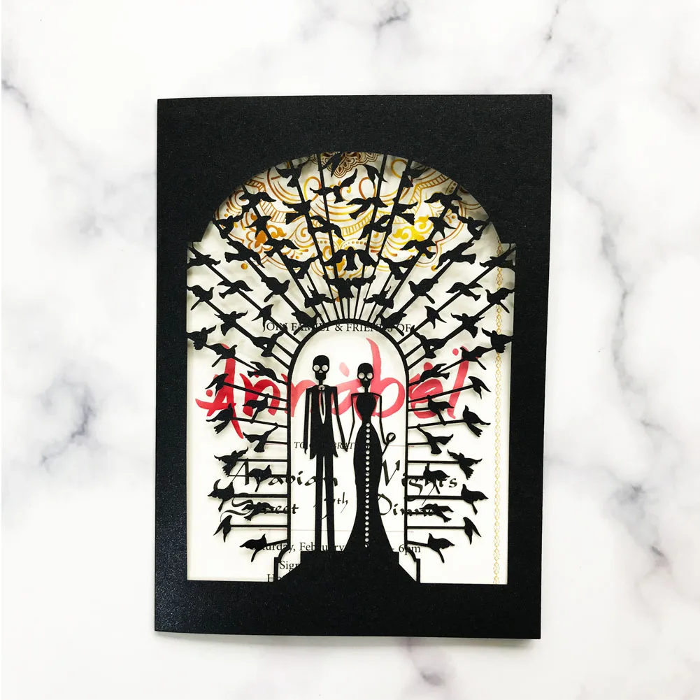 30pcs / lot Evil Spirits Wedding Invitation Card Halloween Festival Fancy Dress Party Invitation Card Kit With Hollow Laser Cut