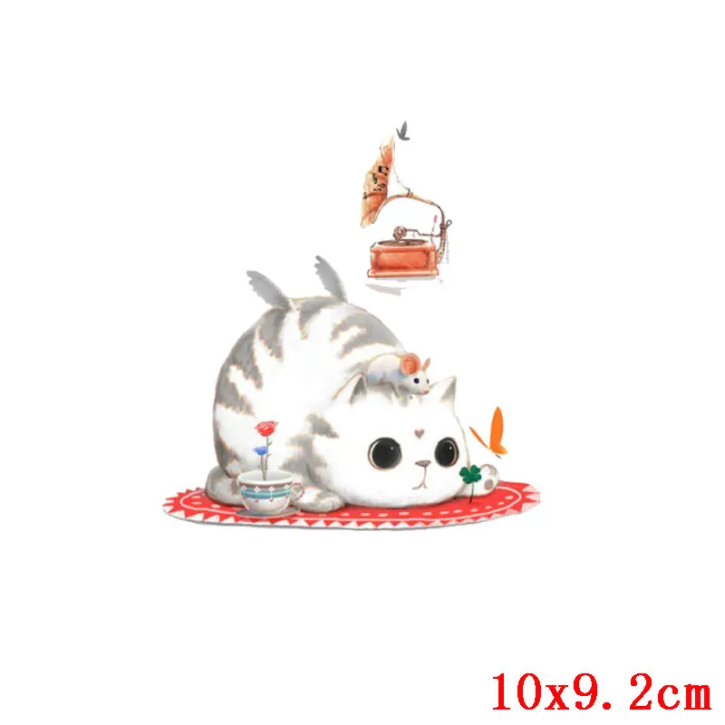 Виниловый пластырь для одежды с изображением кота из мультфильма, термо-Стикеры для одежды с милыми животными, Детская футболка в полоску