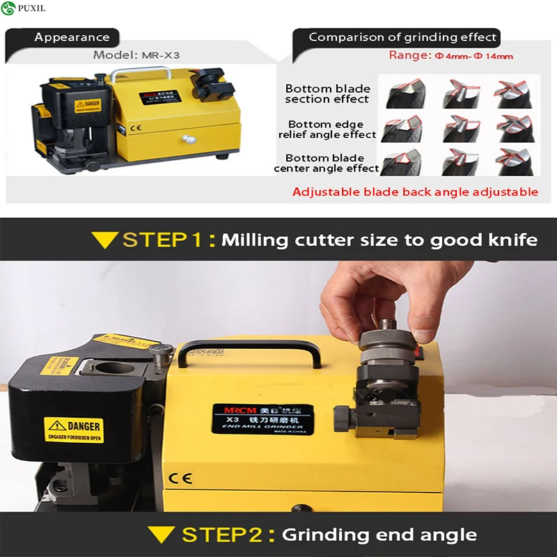 Параметры изделия Модель: MR-X3 Диапазон торцевого шлифования: диаметр 4-диаметр 14 мм Тип шлифовки: 2, 3, 4 Концевая фреза Мощность: 220 В/160 Вт Стандартный шлифовальный круг: CBN или RC Скорость: 4400 об/мин Размер упаковки: 350x230x240мм Вес: 12 кг