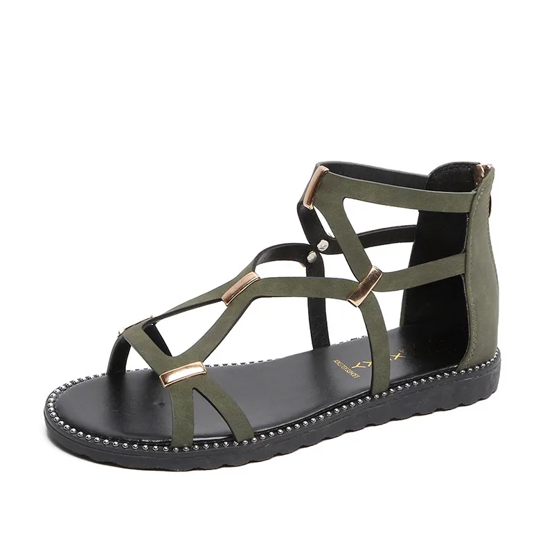 Новинка; Женская обувь в римском стиле; Женские босоножки на плоской подошве с молнией сзади