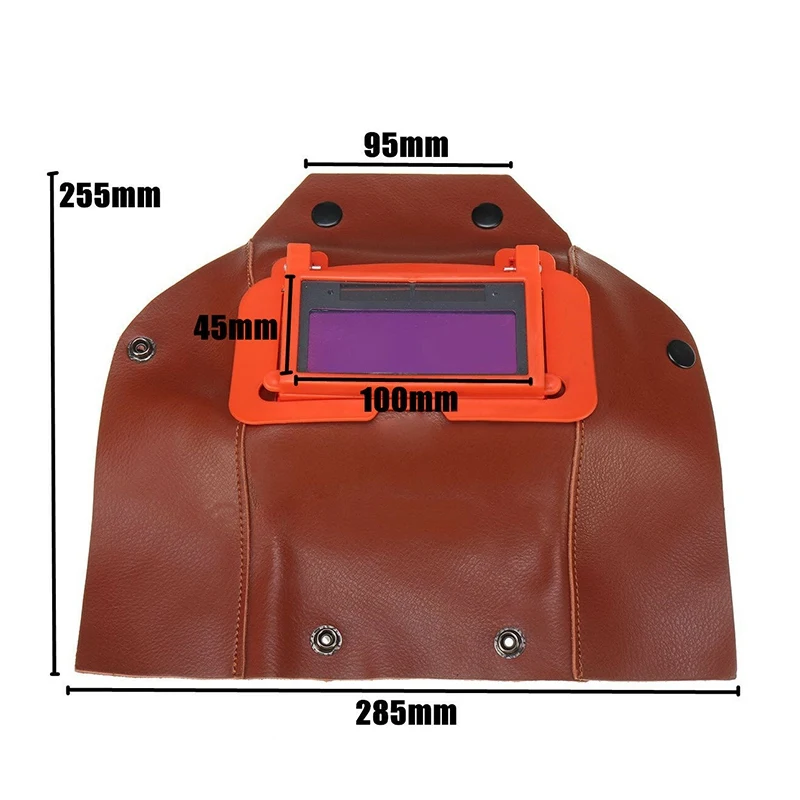 Технические характеристики Цвет: коричневый Материалы: кожа Тип: Крепление на голову Размер: 285*255*95 мм/11*10 * 4in Применение: сварка Особенности -Блокирует сварочное излучение и искры, чтобы защитить ваше лицо и глаза. -Можно сложить, легко носить с собой и автоматически затемнить. Примечание: Из-за ручного измерения возможны некоторые ошибки. Посылка в комплекте 1 x маска с откидными очками