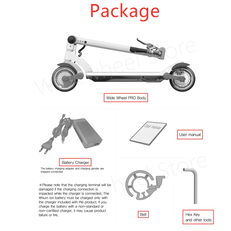 Широкими колесами PRO средства ухода за кожей Батарея Зарядное устройство Шестигранный ключ и другие инструменты Колокол Руководство пользователя