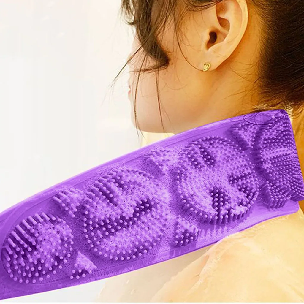 Очистите и протрите этим Силиконовое полотенце и держите его в чистоте! Эти труднодоступные места Иногда может быть болезненным, и теперь у нас есть решение Хороший эффект очистки. Очищает Поры, удаляет грязь, излишки кожного сала и омертвевшую кожу, делая вашу кожу более гладкой Двухсторонний линий Конструкция bump может эффективно принести вам эффект очистки. Силиконовые салфетки Сухой, значительно сокращает выживаемость bact Двусторонняя задняя часть скруббера И массажер для ног/очиститель душа-очищает, массирует и отшелушивает Тело, очищает ваши ноги без изгиба, и вы можете наслаждаться мягкой и Удобный корпус Продукт:Длинный Силиконовая щетка для мытья Материал:Силиконовый чехолПродукт Размеры:( LxW)62x11cm