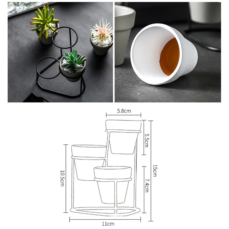 1. Железный цветочный горшок для суккулентных растений. Цветочный горшок изготовлен из керамики. Керамика поглощает воду. Каждый цветочный горшок не имеет дренажных отверстий. Очень подходит для посадки маленьких суккулентов и поддельных цветов.