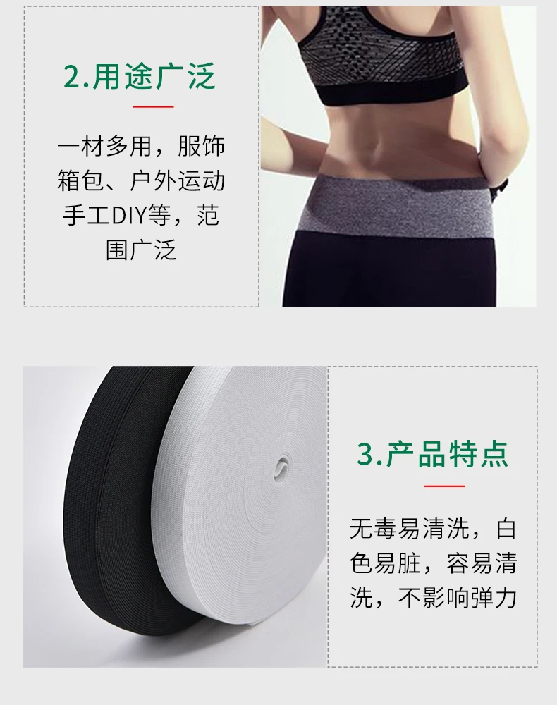 [Наименование]: вязаный эластичный ремень (также называется вязаным эластичным поясом толщиной 3722) [Толщина]: 1 мм [Единица]: 1 ярд и asymp; 0,9144 метров (1 метр и asymp; 1,093613 ярдов) 1 Luo = 144 ярдов = 132 метра [Параметры]: ширина 2 см 2,5 см, 3 см 3,5 см 4 4,5-5 см [Материал]: 100% полиэстер [Спецификация]: объем 2 см-5 м [Для продажи]: пятнистая продажа, положительная продажа, полиэфирный материал может быть окрашен, время окрашивания составляет 7 дней Особенности этого эластичного ремня: тонкая текстура, сильное сухое трение, гладкая и устойчивая к морщинам, гибкая на ощупь рука и регулируемое натяжение по требованию клиентов