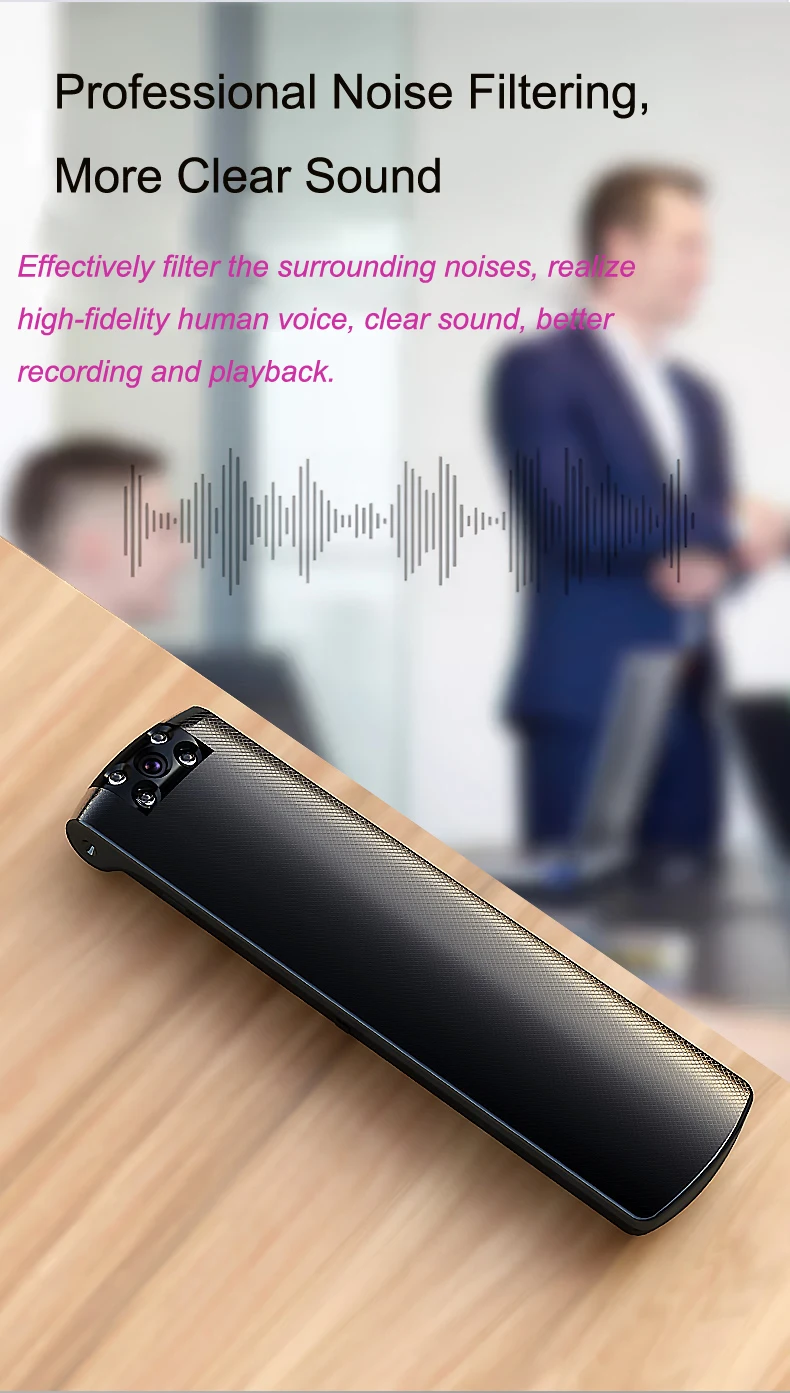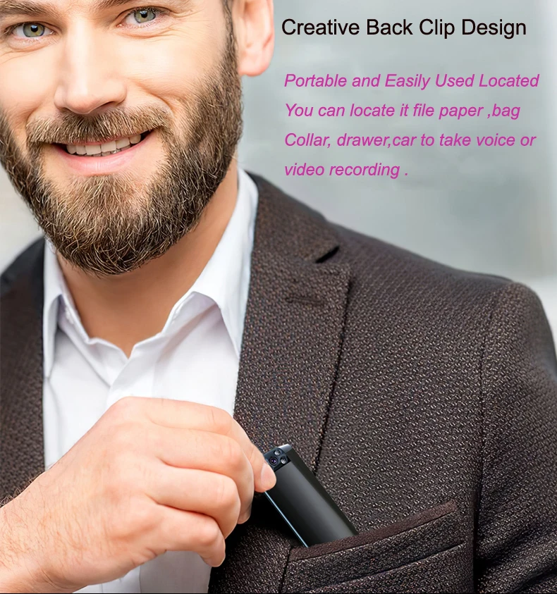 1 однокнопочная Запись голоса видео 2 DSP Acounstic nosie reduction 3 P2P Wi-Fi подключение 10 м мониторинг расстояния приложения 4 настоящего ИК ночного видения 5 м 5 Максимальная память до 128G 6 задних зажимов 7 20 часов записи голоса; 6-9 часов записи видео Синхронизация времени 8 Вращение на 9 180 градусов 10 название приложения: DVRunning2