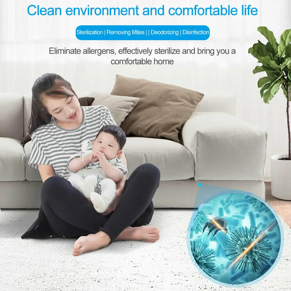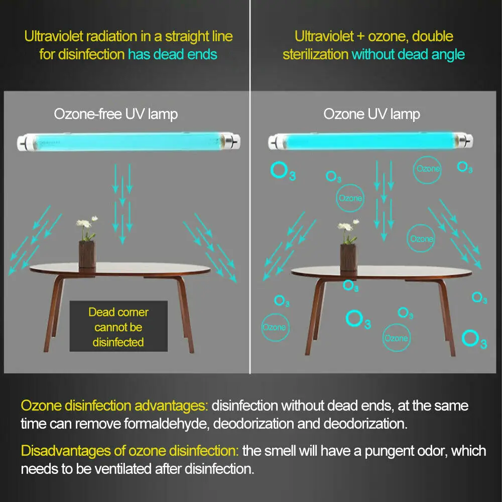 UVC Ray вреден для глаз и кожи, не смотрите на лампу, когда светильник поднимается. Люди/питомцы/растения не могут подвергать светильник. После использования, потому что лампа убивала много бактерий в комнате, пожалуйста, откройте окна и двери, позвольте комнате проветривать 15 минут, а затем войти.