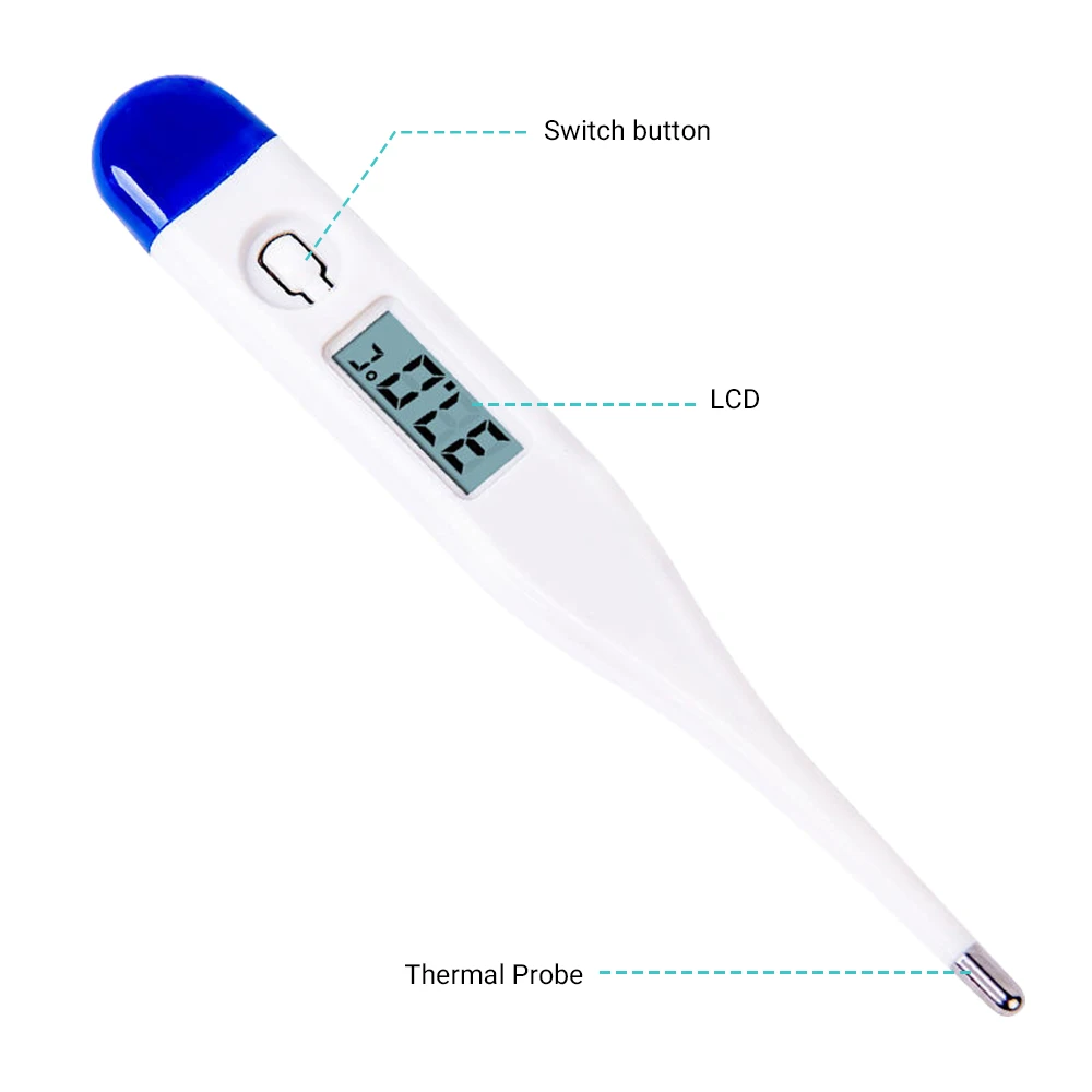 1.Measure body temperature quickly 2. Memory function 3.Suitable for various occasions 4.Temperature sensor is waterproof 5.No mercury and expediently to read