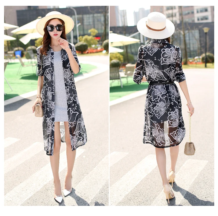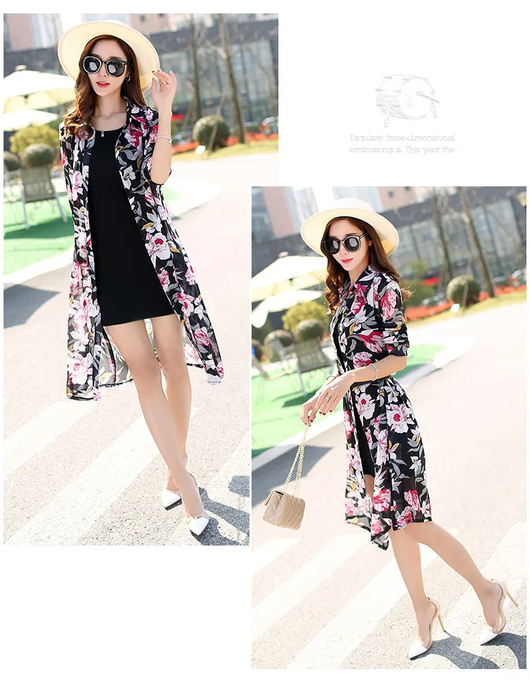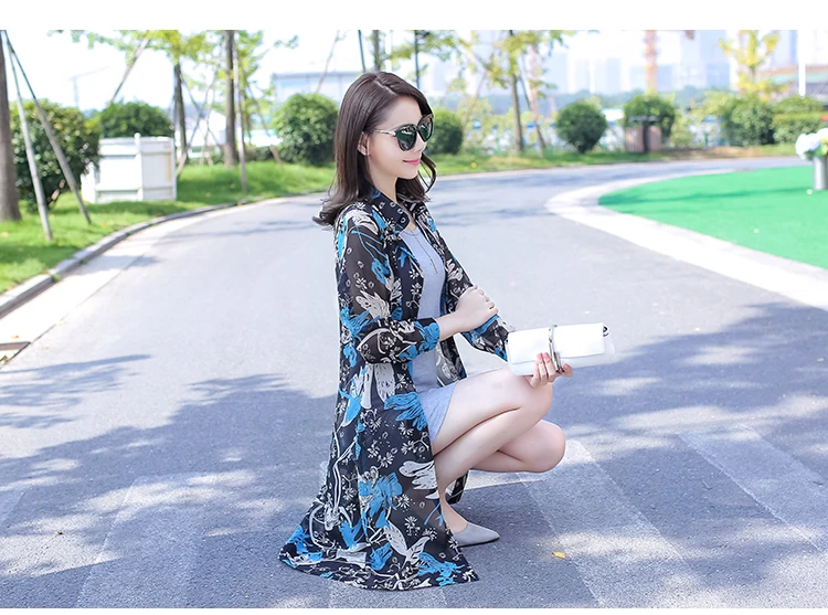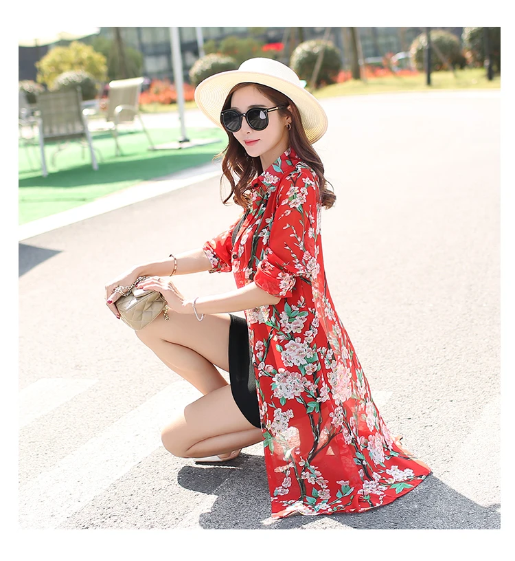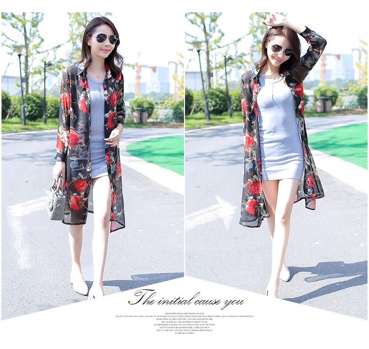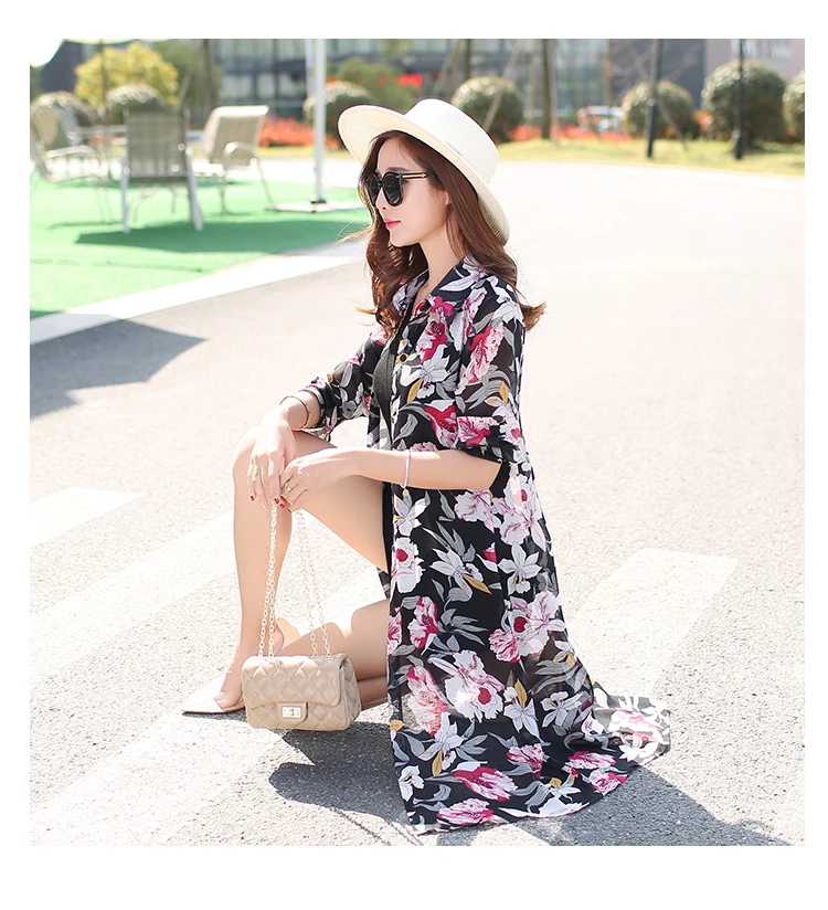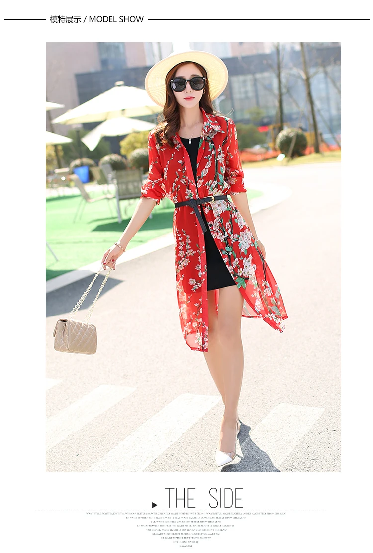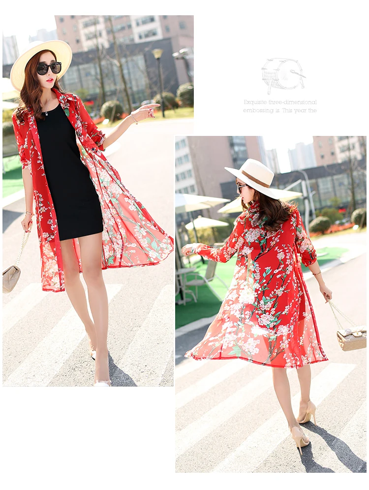 Кардиган TingYiLi в стиле бохо, женская летняя шифоновая рубашка с длинным рукавом для защиты от солнца, винтажный цветочный принт, Пляжное длинное кимоно, кардиган