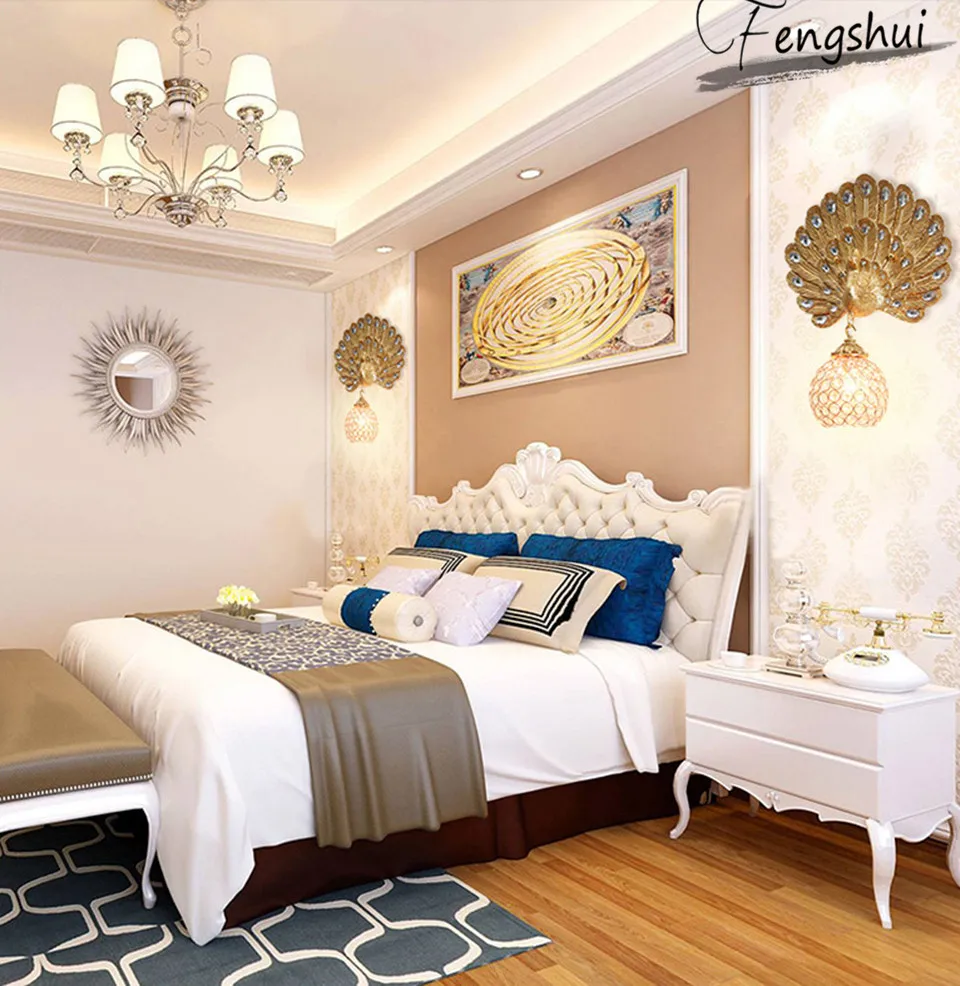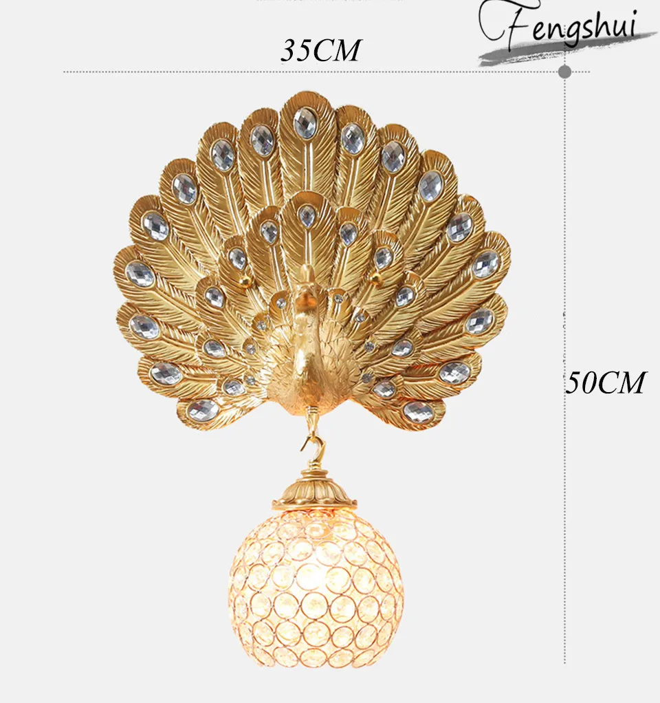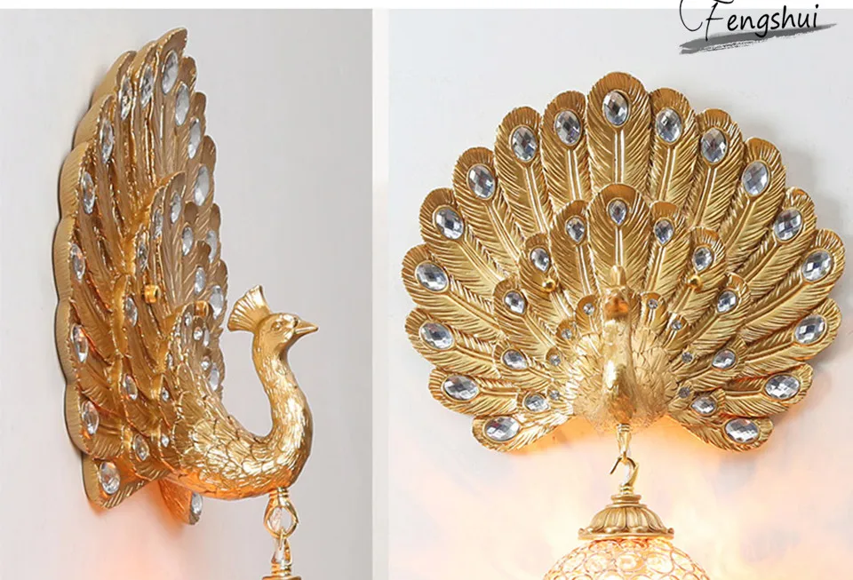 European Style Retro LED Wall Lamp Lighting Creative Peacock Decor Bedside Sconces Living Room Aisle Stairs Lamp Loft Fixtures
