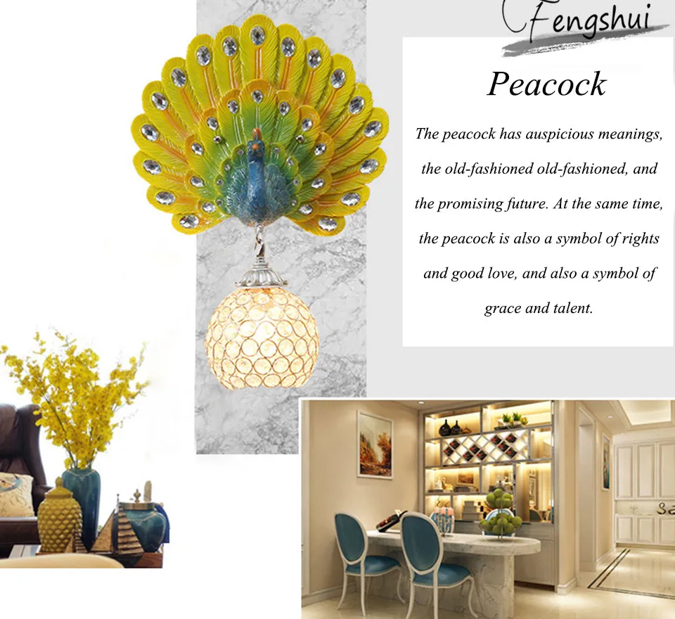 Product Dimensions: 35X50CM Item model number:LED wall lights Style:Nordic peacock wall lamp Material: Resin Bulb type: E27 Voltage:90-240v Places Use: Hotel office Hall Teahouse Tea Bar Home Decor Lighting Fixture living room pubAdditional Services: Light fixtures and other goods can be purchased on behalf. Please provide product pictures and sizes. 1: Shipping mode: DHL UPS FEDEX TNT EMS China Post:; Global ships (except in some countries or special remote locations); If the buyer chooses a mode of transport that is not suitable for the package, the seller is obliged to change it. 2: If the buyer has not received the goods for a long time, please contact the seller in time. Please don't open a dispute. The seller will process the order the first time. 3: Customs clearance tasks: the seller is not responsible for the import customs clearance of the package, the buyer is obliged to clear customs.Buyers are obliged to bear customs duties. The following is a notice of the protection of the rights and interests of buyers: 1. If the buyer receives the package, there is a package breakage/defect/Wrong goods board, please take photos of the product in time, contact the seller for after-sales processing of the order. Please don't open the dispute. We are committed to handling it properly and doing our best to protect the rights and interests of buyers.Thank you 2. Due to the problem of light during photography, there may be differences in photos and objects, please consider clearly when placing your order, we do not accept disputes over such issues. Feedback suggestions: 1: Our goal is to provide all buyers with the best goods and services, and to strive for customer satisfaction to play to 100%. Feedback and advice from buyers is very important to us and other buyers. 2: If satisfied with our products and services, please give us positive feedback (five-star) as a reward, if you feel dissatisfied, you can contact the seller at any time to deal with.