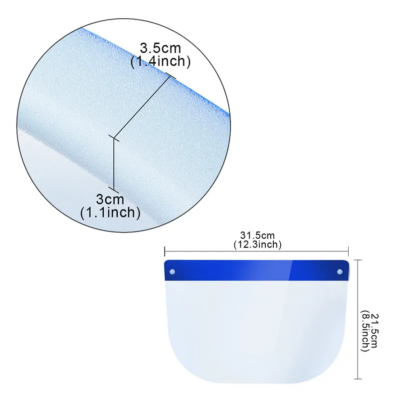Защита лица эффективно предотвращает попадание пыли и брызг на лицо и глаза. Коэффициент пропускания: 90%-92%, обеспечивает четкое видение Размер: 12,6 дюйма (Д) * 8,66 дюйма (Ш) Материал: ПЭТ-пластик Количество: 12 шт. Хорошее сопротивление складыванию, маслостойкость, высокая и низкая термостойкость, используется для длительного времени в диапазоне температур 120 ℃ Изготовлен из ПЭТ-пластика, водонепроницаемый и пыленепроницаемый, легкий и многоразовый, идеально подходит для активного отдыха или кухни Большая область покрытия эффективно защищает ваши глаза и лицо от брызг и брызг Прозрачный и противотуманный обеспечивает четкое видение. Регулируемый подходит для различных форм и размеров лица, делает его удобным в носке, мягким и гибким Посылка включает в себя: 6/12 шт. защита всего лица