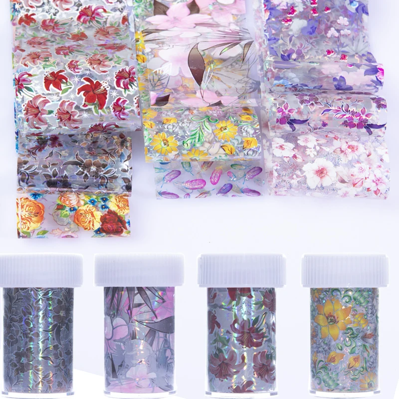 LOVCARRIE 100*4 см голографический цветок для ногтей, фольга для ногтей, переводная фольга, наклейка на ногти водная гелевые наклейки, Слайдеры для украшения для ногтей, маникюра