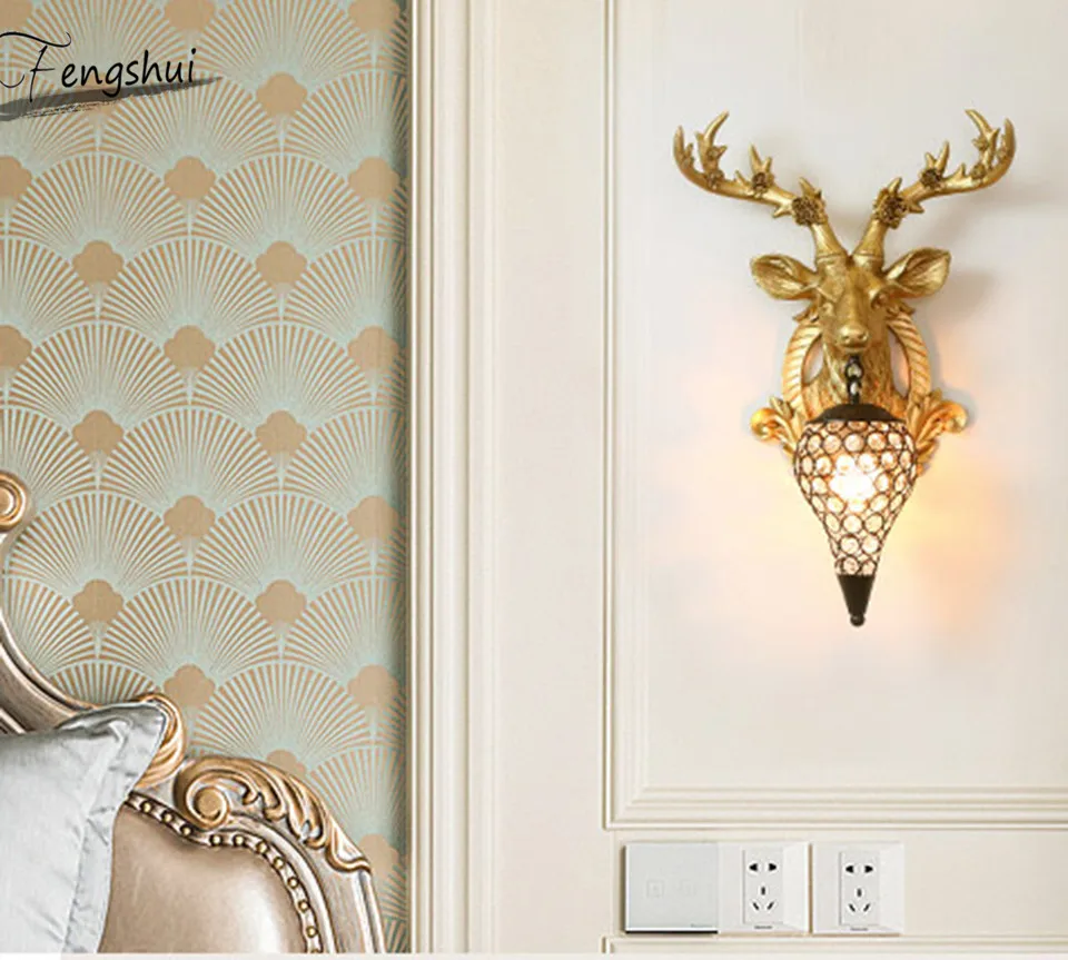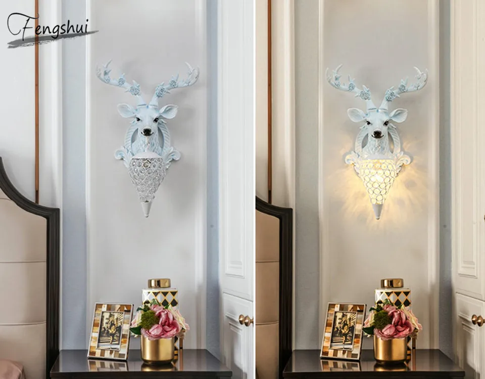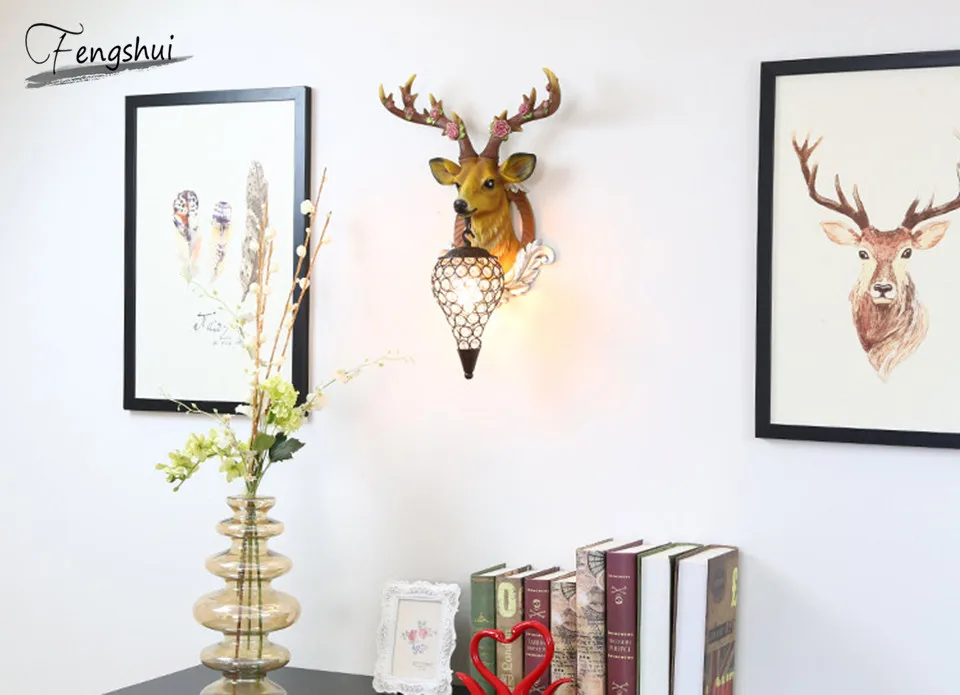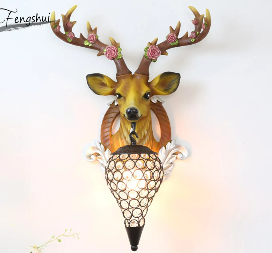 Скандинавский Креативный светодиодный настенный светильник с головой оленя, американский прикроватный настенный светильник для гостиной, ресторана, лестницы, декоративные светильники