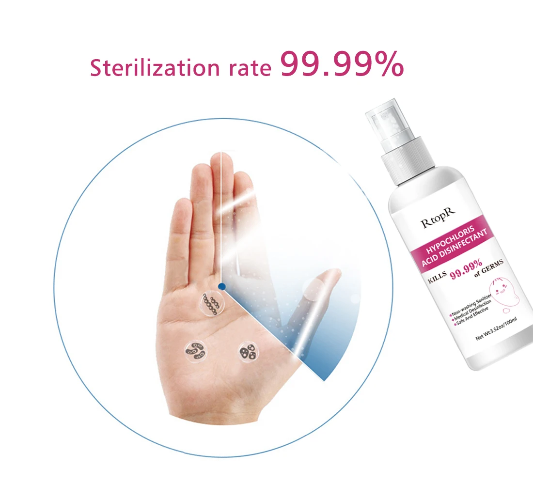 1. Очистите и подавите бактерии, эффективно убивайте различные патогенные бактерии, такие как: вирусы рук и ног, вирусы гриппа, Candida albicans, Staphylococcus aureus и распространенные бактерии и т. д. Имеют очевидный эффект уничтожения. 2. Этот продукт используется для дезинфекции хирургических, санитарных рук, поверхности предметов, продуктов питания и напитков, фруктов и овощей и воздуха в помещении, и может эффективно подавлять перекрестную инфекцию бактерий.