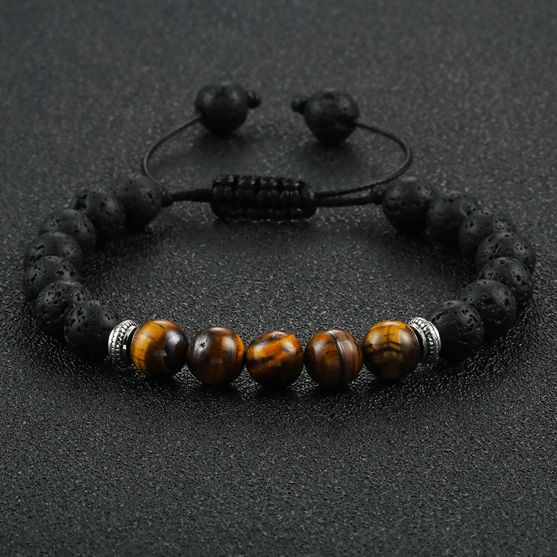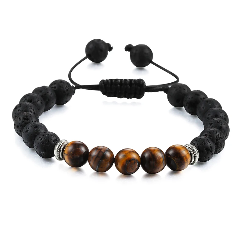 Прямая поставка мужской браслет из лавового камня с эфирным маслом диффузор Классический женский лечебный баланс тигровый глаз бусы браслеты регулируемый плетеный браслет ювелирное изделие для йоги подарок для влюбленных