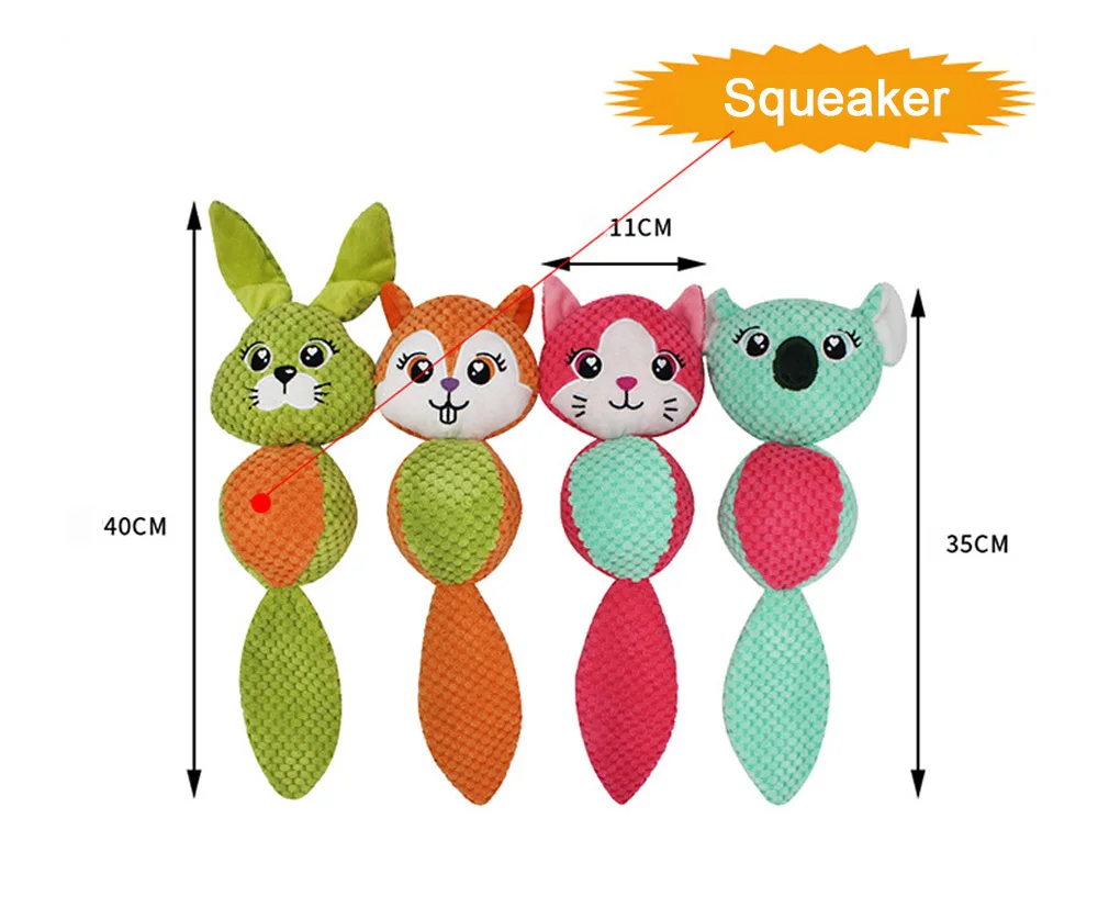 Название: смешные, в форме животных игрушка для собак Материал: флис Тип: писк/жевание Цвет: как показано на картинке Стиль: кролик/Кот/белка/коала Размер: Кролик (40*11 см) Кот/белка/коала (35*11 см)
