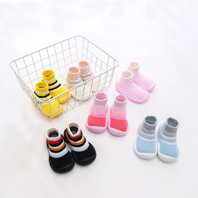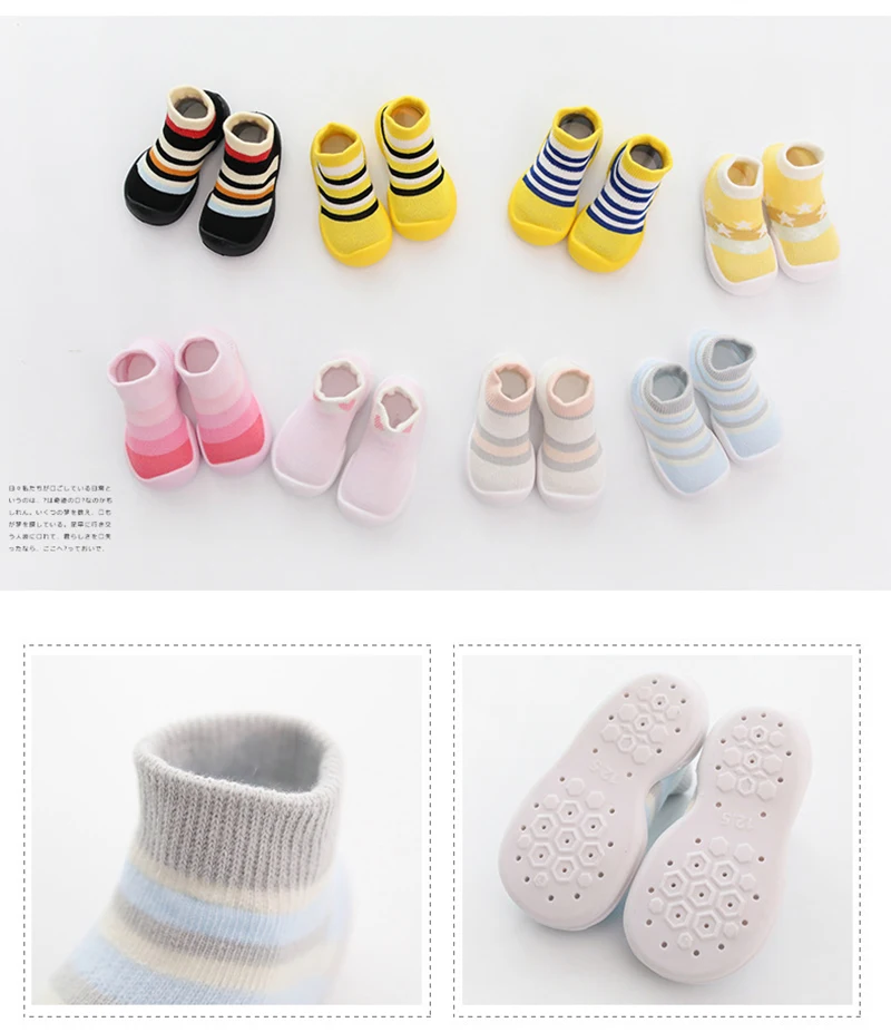 This is innovative and unique footwear for children. Light as a sock and more supportive than a moccasin.Use breathable materials and the wide model allows the toes to move freely. These non-slip shoes with silicone insole supports ergonomic baby's feet and is perfect for the first step and forward. It can be used both indoor and outdoor. The shoes design is based on kinetic and physio dynamic tests performed on young children's walking patterns. This shoes is produced without the use of harmful substances. Pull-on style.Perforated, breathable soles. Non-slip and waterproof non-marking soles. Extra soft insoles. Flexible. Give your little one the comfort of socks with the durability of shoes for indoor playtime on cold floors. Color: pink/black/Blue/Yellow Material: Cotton Feature : Breathable /Non-slip Inner length/Size: 11.5cm(20-21) /12.5cm(22-23) /13.5cm( 23~24) /14.5cm(24-25) /15.5cm(26-27) Recommended age:5-8M /9-13M /14-20M /21-28M /29-35M Suitable for use from 6 months to 3years