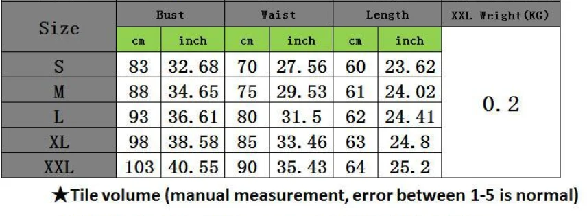 1. Возможна разница в 2-3 см в соответствии с измерениями вручную. 2. Пожалуйста, внимательно проверьте таблицу размеров перед покупкой товара. 1 дюйм = 2,54 см 3. Как вы знаете, различные компьютеры отображают цвета по-разному, цвет фактического товара может незначительно отличаться от приведенных ниже изображений. 4. Выберите больший размер, если ваш размер между двумя размерами.