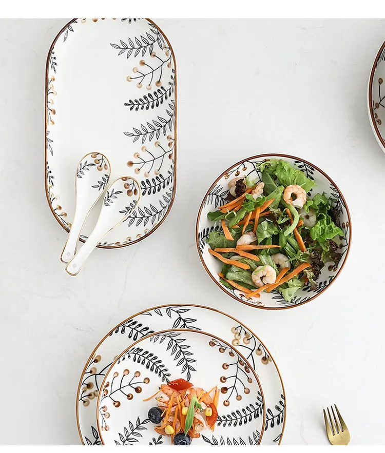 Изысканная керамическая обеденная тарелка в скандинавском стиле, креативная фарфоровая тарелка, тарелка для супа, тарелка, набор посуды для дома