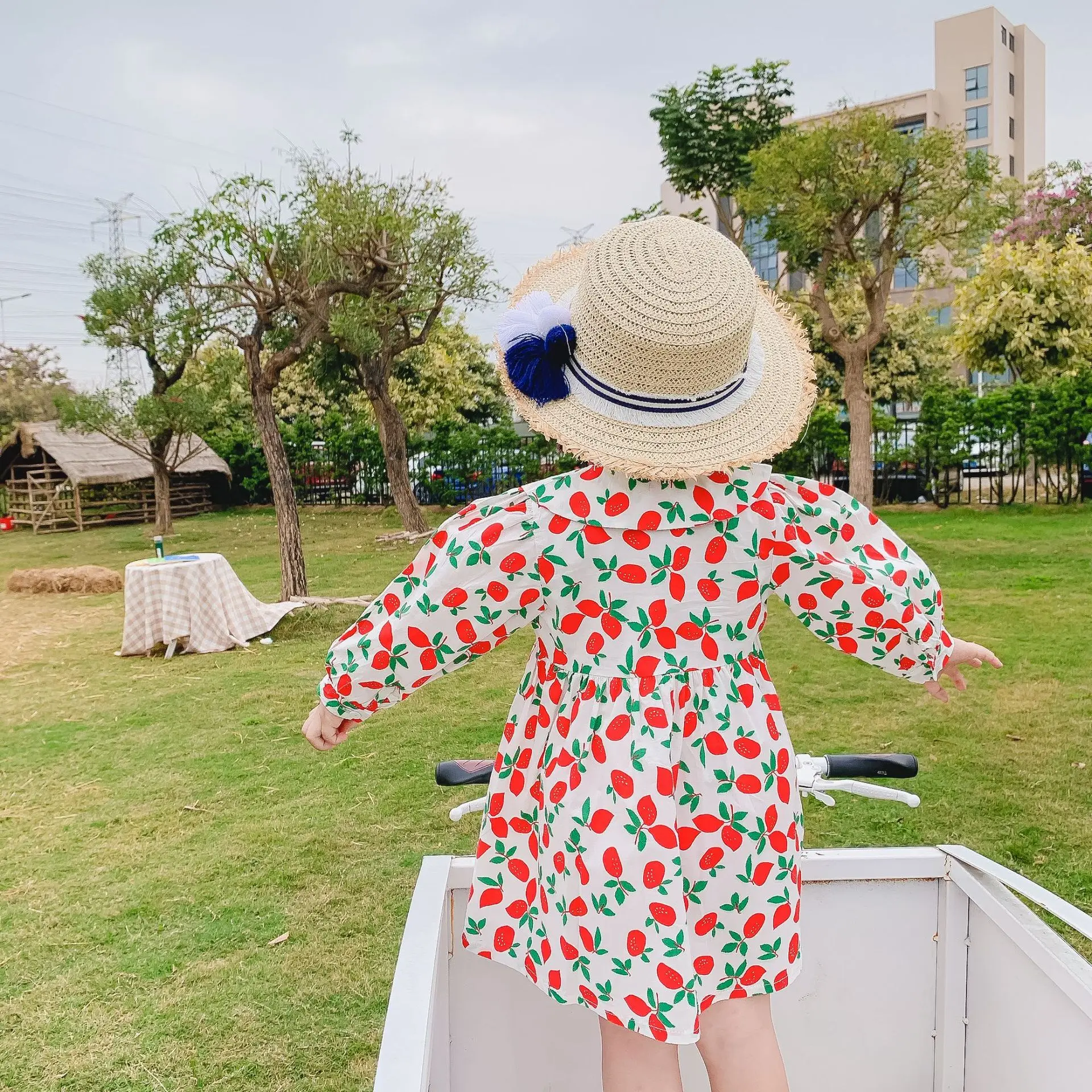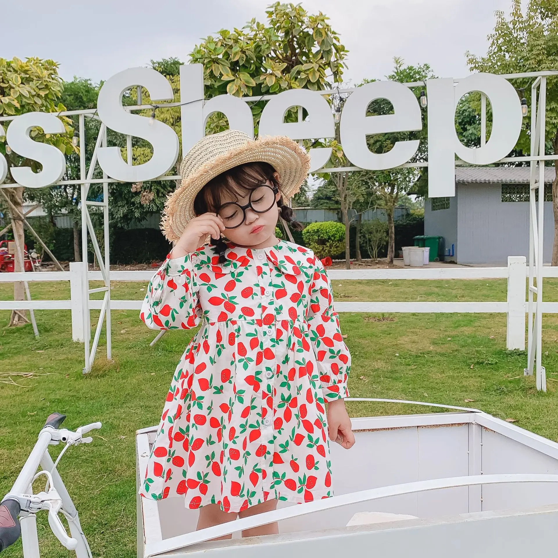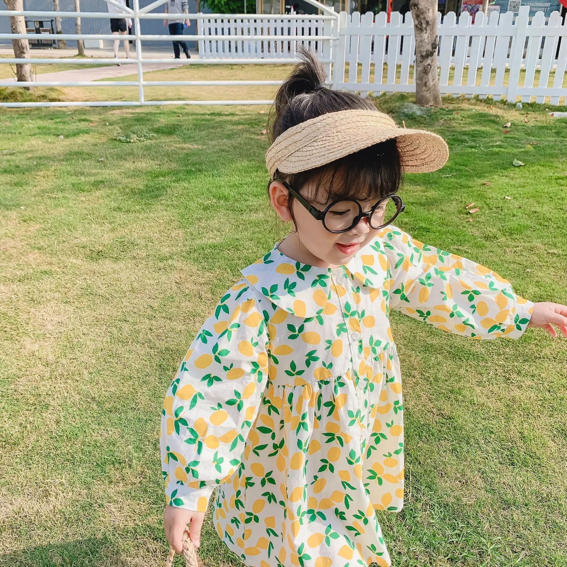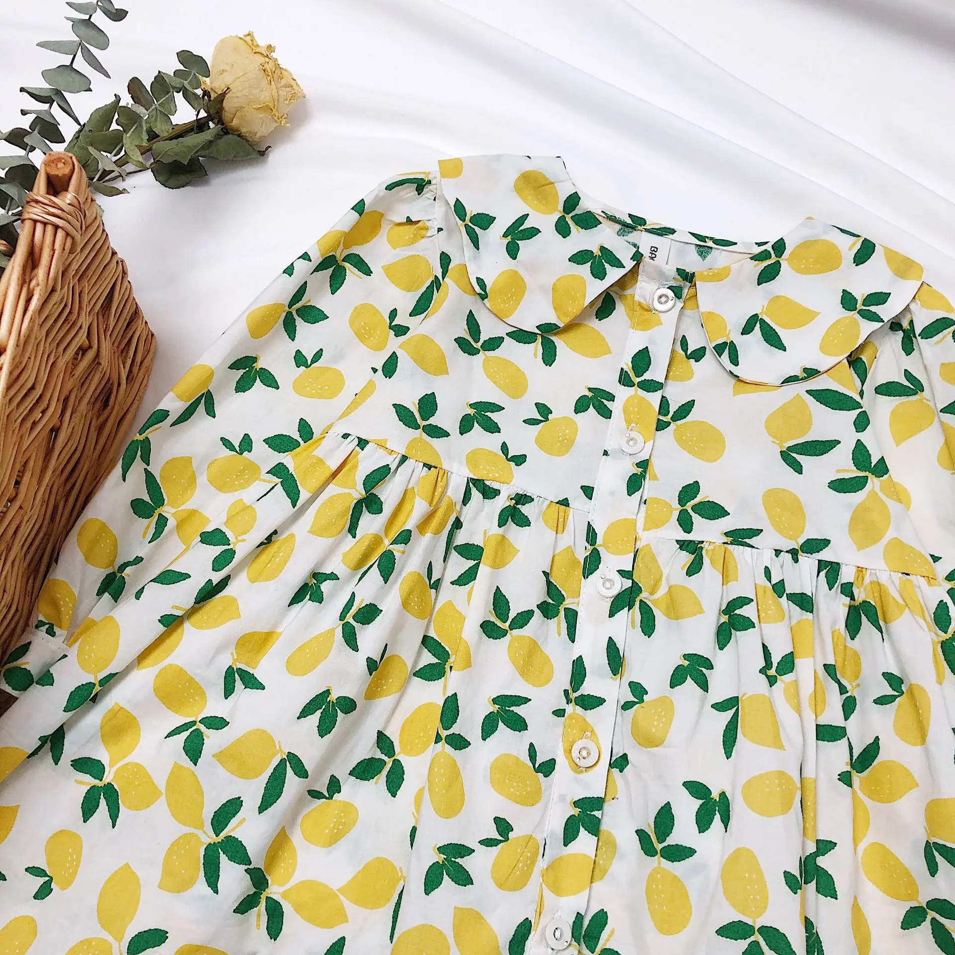 Весна 2020, Новое поступление, свободное Хлопковое платье с длинными рукавами для маленьких девочек, повседневные платья с цветочным воротником для девочек, милое платье принцессы