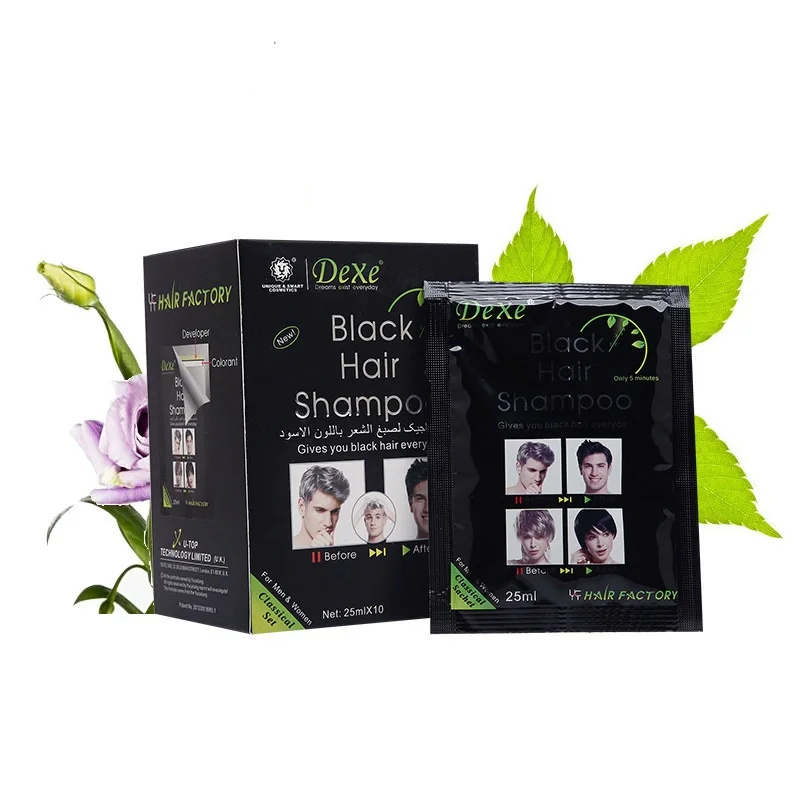 10 шт. черный dexe шампунь для волос цвет волос только 5 минут белый становится Черный Быстрый Краска для волос 25 мл для мужчин и женщин мужчин уход за волосами