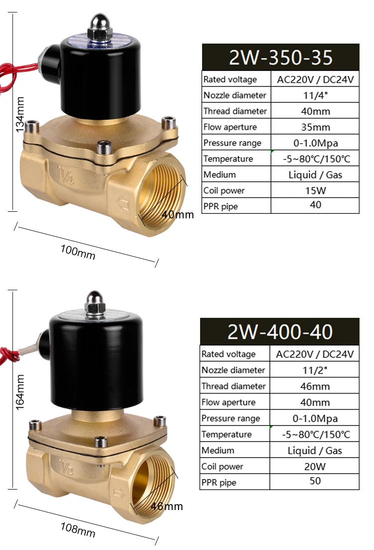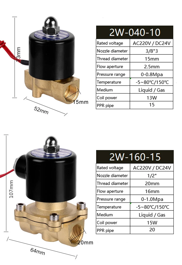 Используется для контроля направления, потока, скорости среды в промышленности. Совместимы с обычными средами, включая воздух, воду, инертный газ, жидкости с низкой вязкостью. Может быть установлен под любым углом, лучше, когда горизонтальная трубка держать вверх. Название продукта: электромагнитный клапан Модель: 2W025-08,2W040-10,2W160-15,2W200-20,2W250-25,2W350-35(320-32),2W400-40,2W500-50Voltage: AC220V,DC24V,DC12V Рабочая среда: воздух, вода, метод работы масла: прямое действие Тип: нормальная Закрытая вязкость жидкости <20CST Максимальное давление: 1.0Mpa Рабочая температура: -5 ~ 80 ℃ диапазон напряжения ± 10%