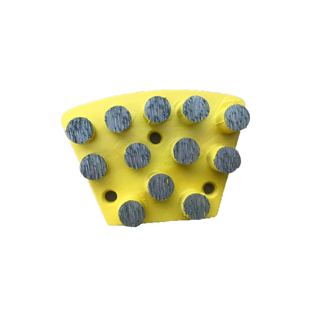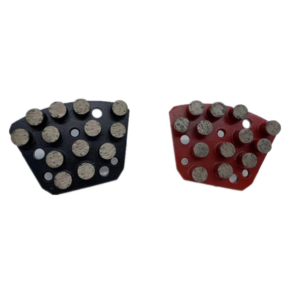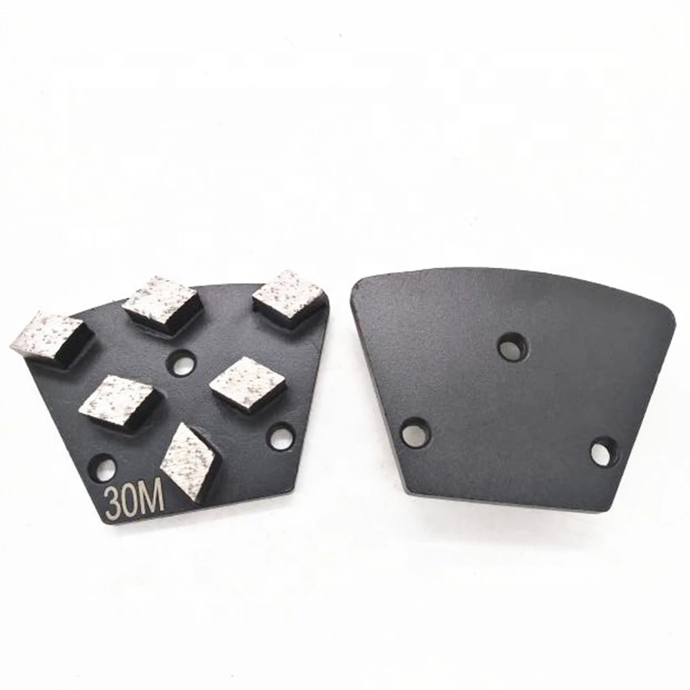 Трапециевидная алмазная шлифовальная обувь для бетона и пола терраццо Металлические стразы имеют высокую прочность, отличную износостойкость и низкий коэффициент трения. Металлические алмазы высокой эффективности шлифования и низкой силы шлифования генерируют меньше тепла в процессе шлифования. Применение: подходит для общего (бетона, камня) шлифования, в то время как в основном они используются для краски, клея, эпоксидного удаления и покрытия пола, высокое качество и высокая эффективность, длительный срок службы. Преимущество: очень эффективно для сложных ситуаций, таких как удаление очень стойкого покрытия. Характеристики: отличная износостойкость, низкая стоимость, лучшая отделка поверхности и т. д. Примечание: специальный логотип, размер сегмента и формы, установка доступна по запросу клиента. Название продукта: чайники алмазные бетонные шлифовальные туфли с тринадцатью сегментами круглой формы Номер товара: GS58 Материал: алмазные сегменты + металлическая заготовка Минимальный заказ: 12 шт./компл. Размеры сегментов: тринадцать сегментов круглой формы Подключение: три резьбовых отверстия M6/M8 или три пустых отверстия. Машина: Быстрый консервировочный шлифовальный станок Сегмент зернистости: 16 #, 24 #, 36 #, 46 #, 50 #, 80 #, 100 #, 120 #, 180 #, 200 #, 270 # и т. Д. Твердость: очень мягкая связь, мягкая связь, средняя связь, жесткая связь, очень жесткая связь, экстремальная жесткая связь. Качество: международный стандарт качества Применение: бетон и Терраццо пол