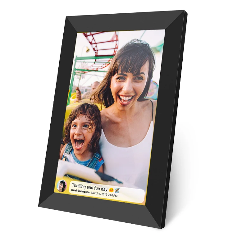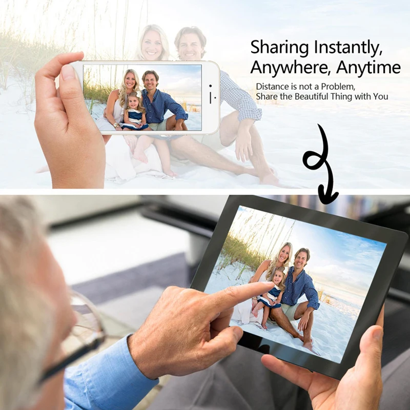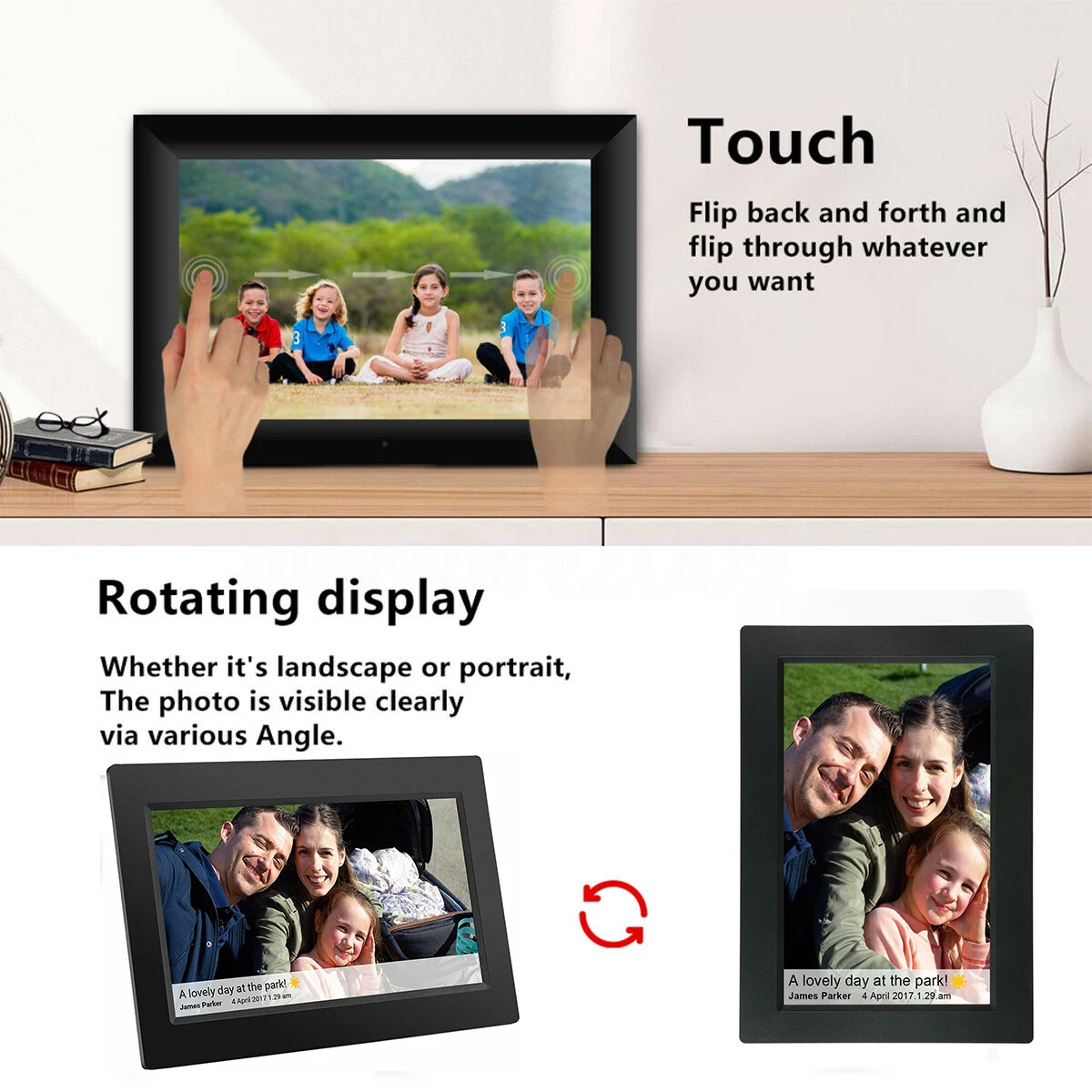 10,1 дюймовая цифровая фоторамка с 1280x800 IPS Дисплей (16:9) виден четко через 180 градусов угол обзора. Сенсорный экран позволяет настроить рамку и удобно просматривать фотографии.