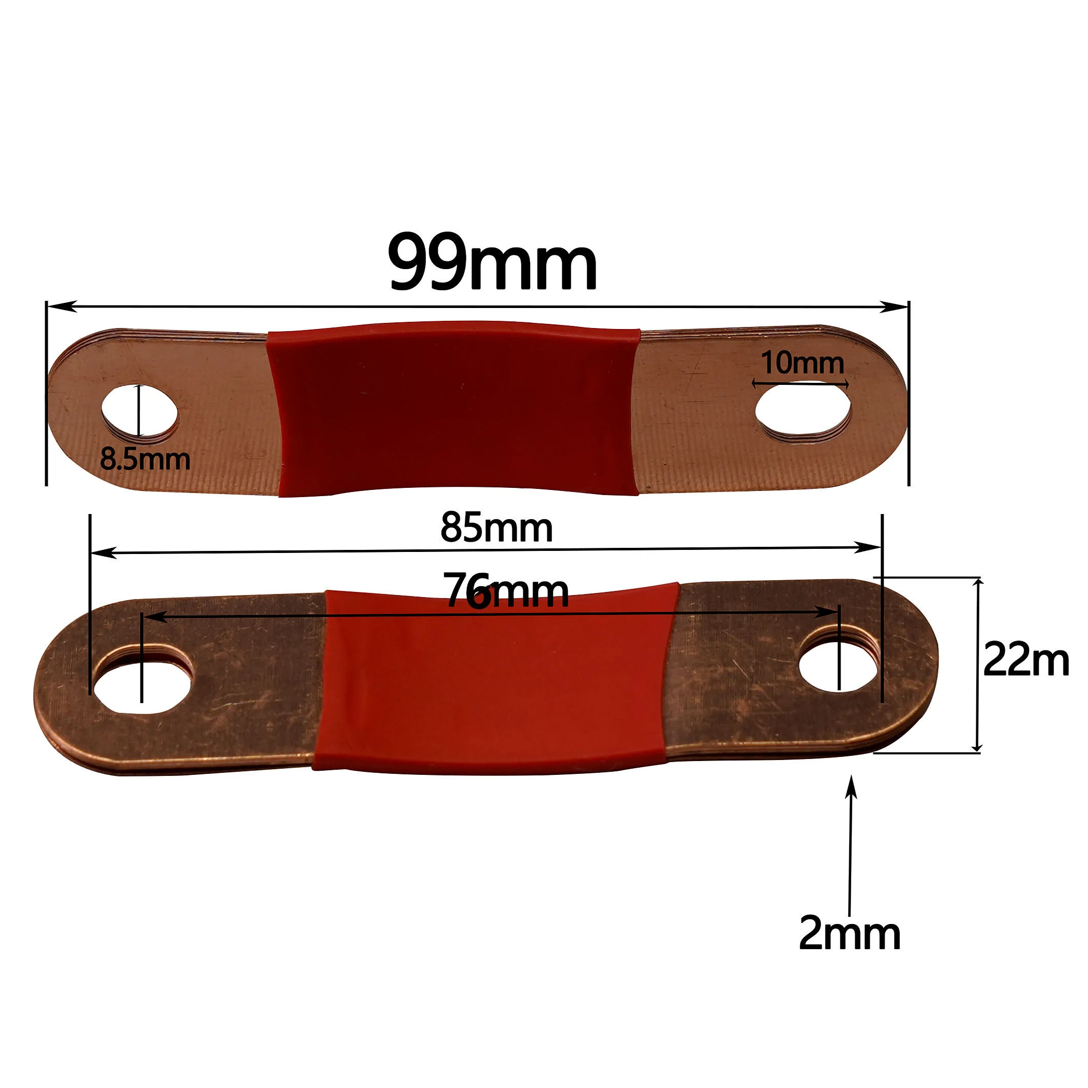 Шина для литий 3,7 V 3,2 V lifepo4 аккумуляторная батарея разъема для высокими антиокислительными свойствами для 200AH 300AH Особенности: Разъем для аккумуляторной батареи 80-600Ah LiFePO4. Вес: 33 г Размеры: 99x22x2 мм Отверстие в отверстие (центр) Размер: 76 ± 0,5 мм Диаметр 1:9 мм Диаметр 2:10 мм Винт адаптера: M6/M8