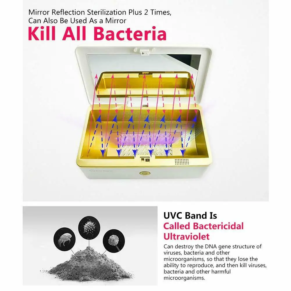4. Безопасно в использовании: если вы случайно откроете коробку во время работы, она автоматически перестанет работать, чтобы выключить УФ светильник. Поэтому вам не нужно беспокоиться о том, что стерилизационная коробка наносит вред вашему организму.
