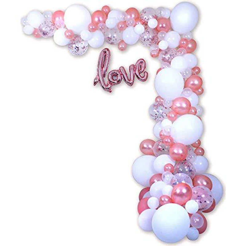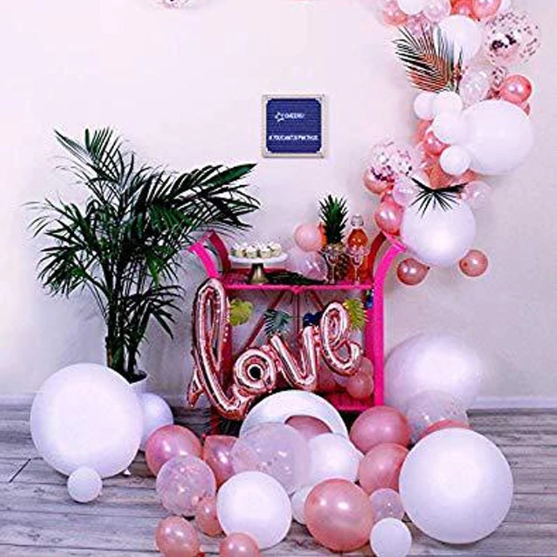 3. Идеальные вечерние украшения: Этот комплект гирлянды с воздушным шаром состоит в основном из белого и розового цветов, это является синонимом элегантности, чистоты и благородства. Это определенно будет лучшим выбором для вашего свадебного украшения, а также отлично подходит для свадебного душа, дня рождения, детского душа, юбилея и других мероприятий.