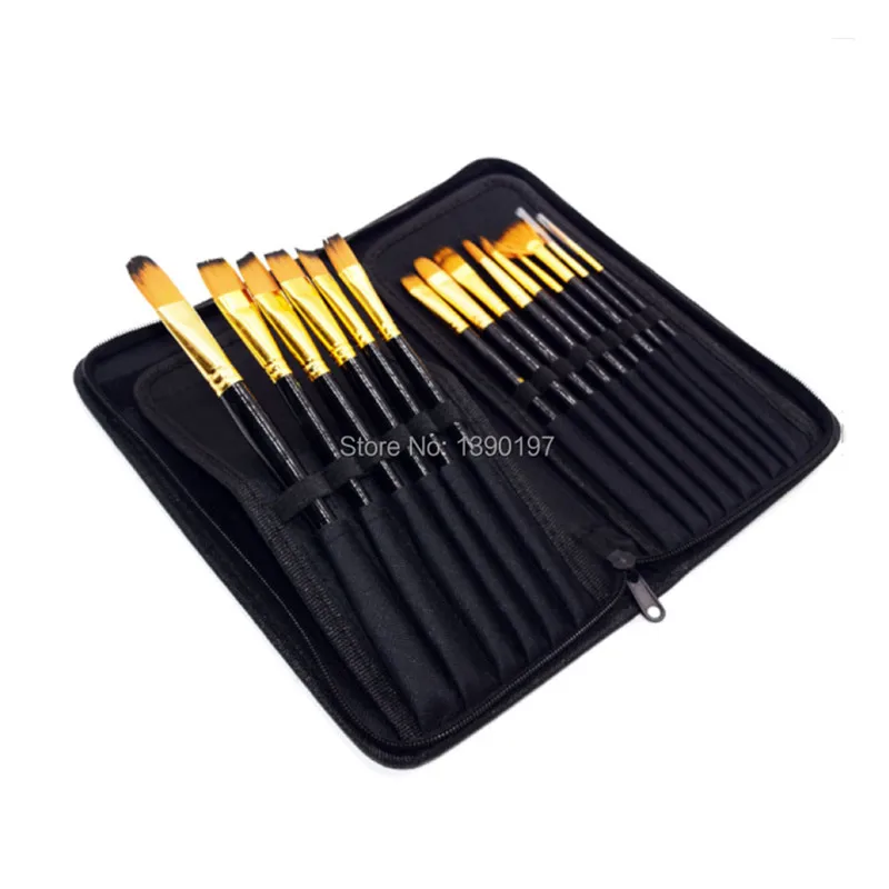15 нейлоновых шерстяных акриловых кистей, Набор тканевых сумок для масляной живописи, профессиональный набор кистей.