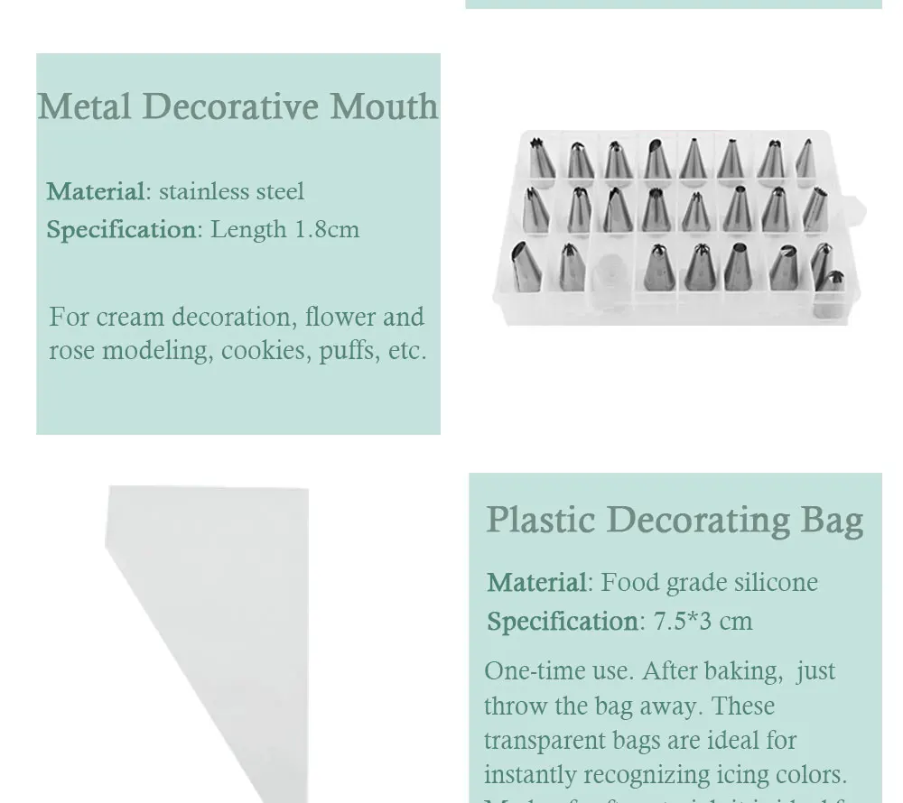 [Идеальный подарок] наборы содержат все инструменты для выпечки, которые вам нужны, вы можете украсить различные торты ручной работы и пирожные в качестве подарка, чтобы выразить свою любовь и искренность для кого-то, кого вы заботитесь. Это также может стать лучшим подарком для любителей выпечки, пекаря и женщин.