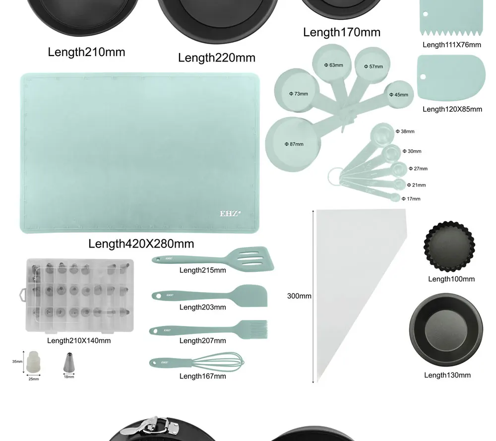 【 60 шт. набор для выпечки: включает в себя❣8,3 "круглая разъемная форма для торта,❣8,6 "& 6,7" круглые противни для тортов с подвижным дном,❣2 заварных противни для пирога,❣2 пирожных кастрюли для кексов,❣Силиконовый кондитерский коврик для выпечки,❣5 мерных стаканчиков,❣5 мерных ложек,❣Силиконовый венчик,❣2 силиконовых шпателя,❣Силиконовый шпатель с прорезями,❣Силиконовая щетка для протирания,❣24 наконечника для глазури из нержавеющей стали,❣1 конвертер кончика глазури,❣3 скрепера,❣10 одноразовых пакетов. Это хороший набор для вас, чтобы сделать различные пирожные, кондитерские изделия и пироги.
