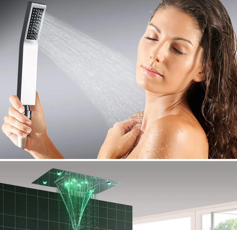 Высокое качество, Многофункциональный цветной светодиодный смеситель для душа, система водопада, набор для душа с гидроабразивным клапаном