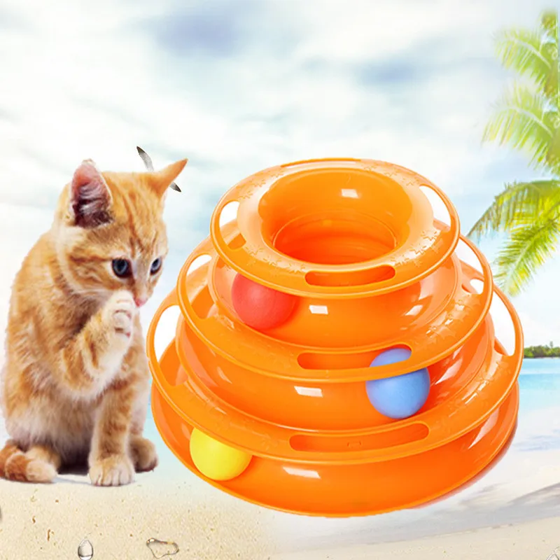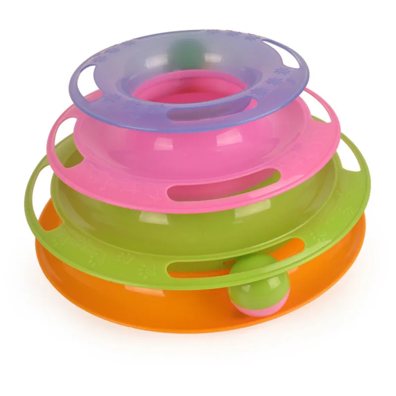 Новые три уровня игрушки для домашних животных в виде башни треки диск для кошки интеллект развлечения тройной диск игрушки для кошек мяч тренировка развлечение пластины