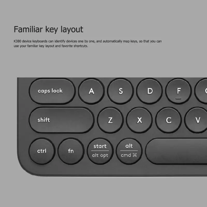 K380 Multi-Device recognizes each device and automatically maps keys to give you a familiar layout with your favorite shortcuts.