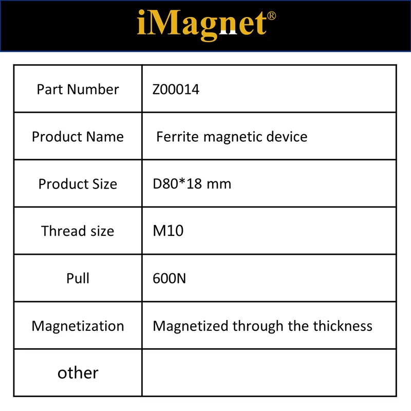 Описание товара: Форма: диск Материал: ферритовый магнит Размер: прибл. D80 * 18 мм Покрытие: никель Размер резьбы: M10 Тяга: 600N Максимальная температура: 100 ℃ Количество: 1 шт. Резьбовой женский куст позволяет легко фиксировать, идеально подходит для всех применений фиксации