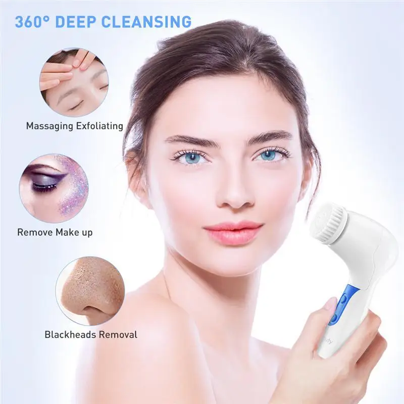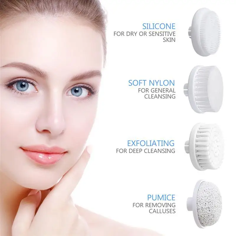 1 x набор из 4 в 1 водостойкая электрическая Очищающая щетка для лица и тела с 4 насадками для удаления угрей отшелушивающая и массирующая