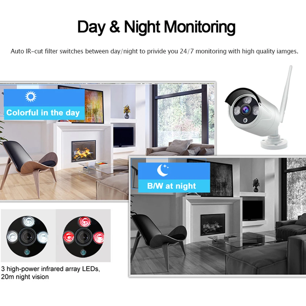 Беспроводные связи между камерами и NVR, без сложного кабеля. Очень простая установка и настройка. Настоящий plug and play, не требует профессиональных навыков, вы можете полностью сделать это самостоятельно и построить свою систему видеонаблюдения.