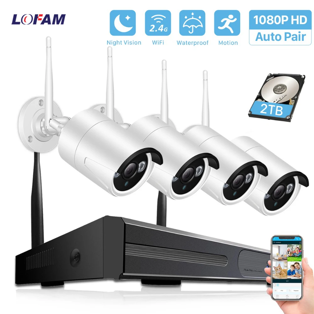 Беспроводная камера видеонаблюдения LOFAM, 1080P, 2 МП, 4 канала, Wi-Fi, NVR, водонепроницаемая IP-камера