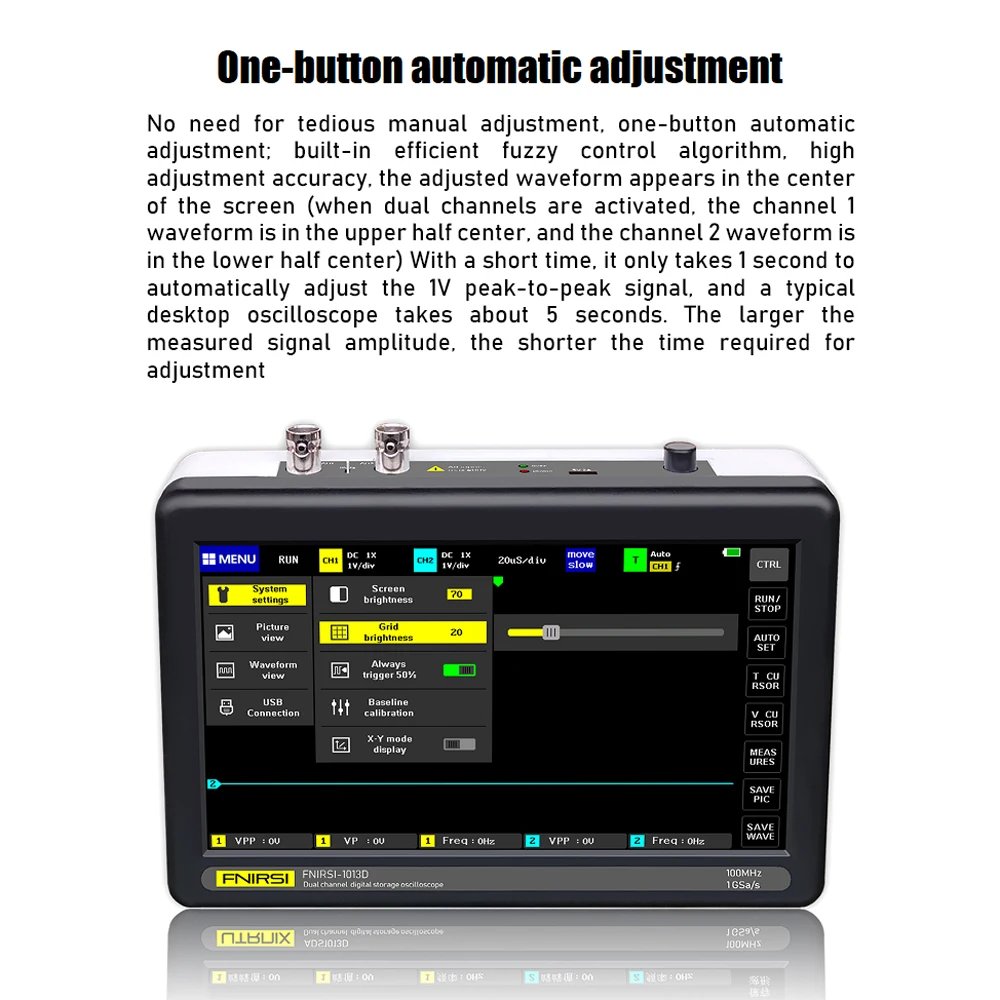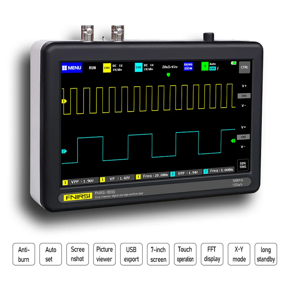 ADS1013D-полнофункциональный, высокопрактичный, экономически эффективный двухканальный осциллограф с плоской панелью для обслуживания и научно-исследовательской отрасли.