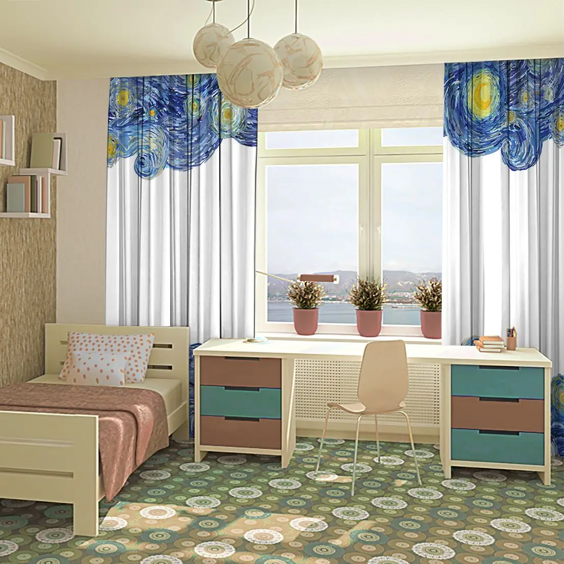 Панели можно повесить с помощью штор или крючков.