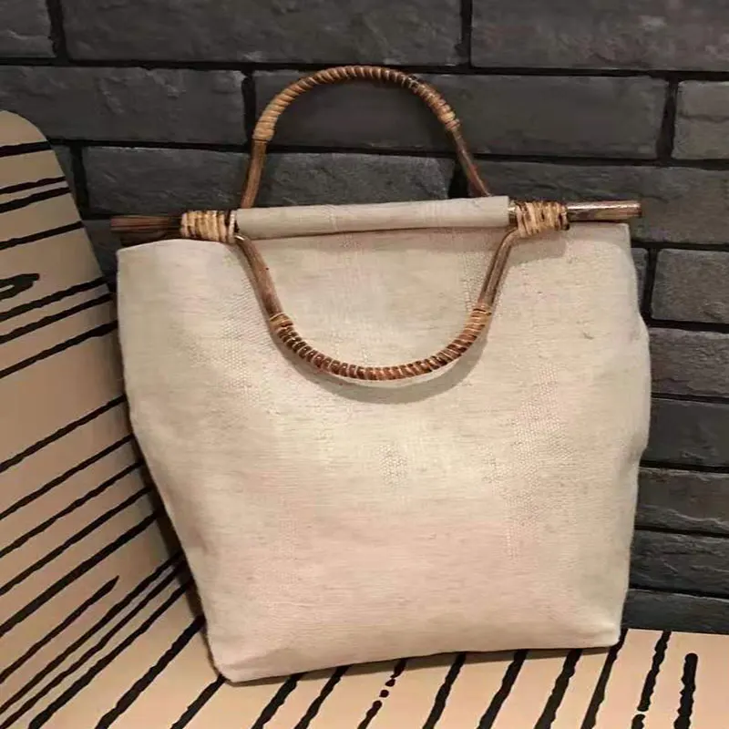 1 шт. d-образная вешалка с деревянной бамбуковой ручкой для ручной работы, сумка-тоут