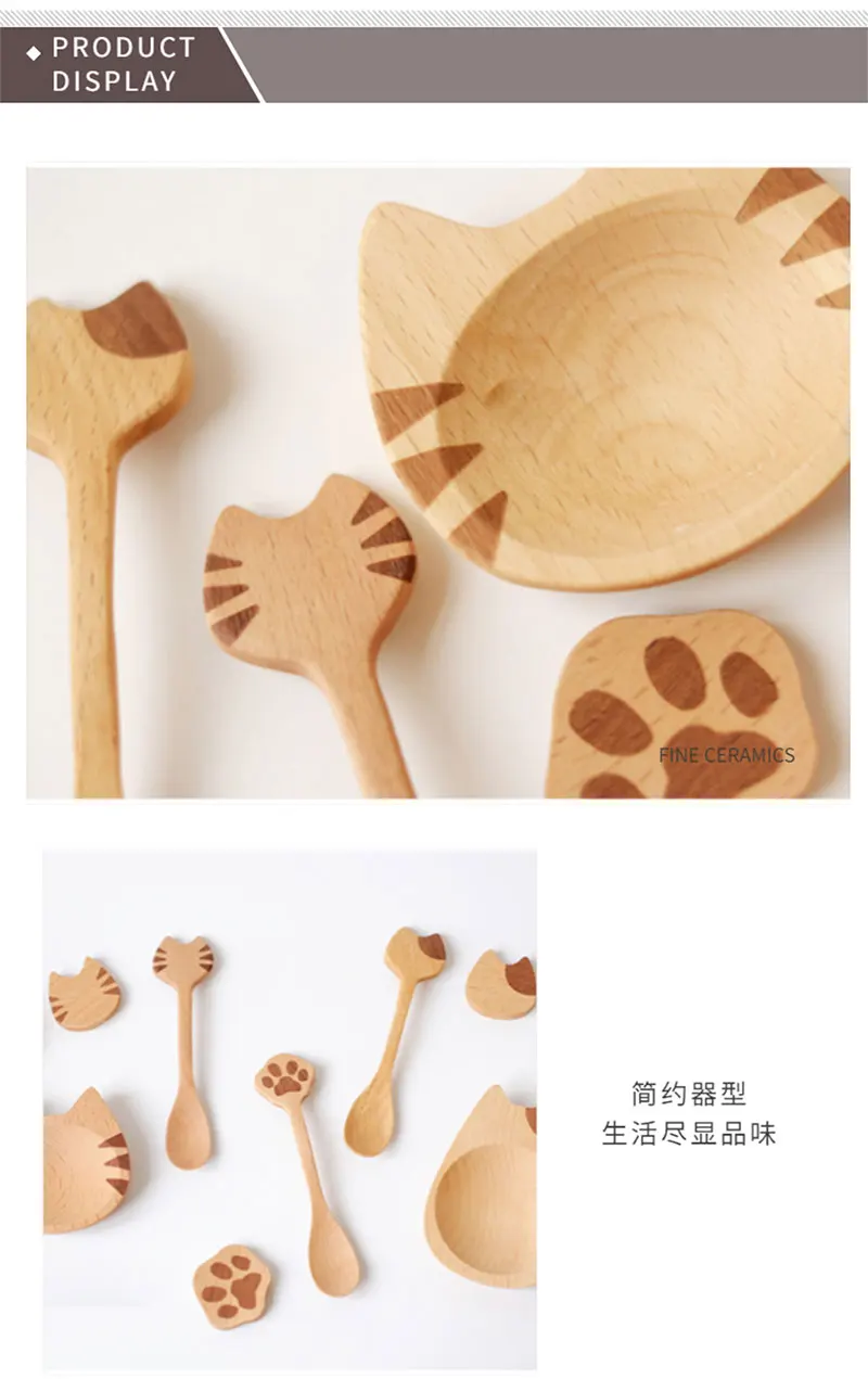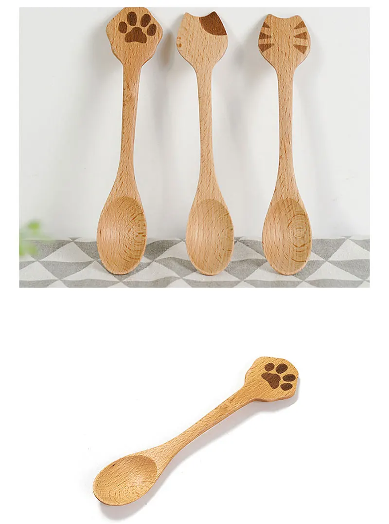 3 шт., милая деревянная ложка для кошек, Бамбуковая кухонная утварь, китайская столовая ложка для супа, креативная посуда, кухня, Ресторан