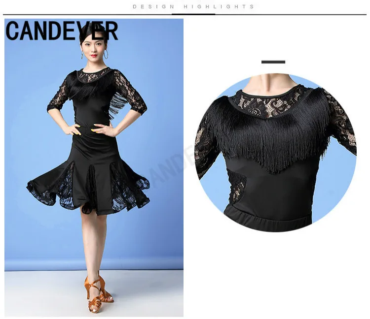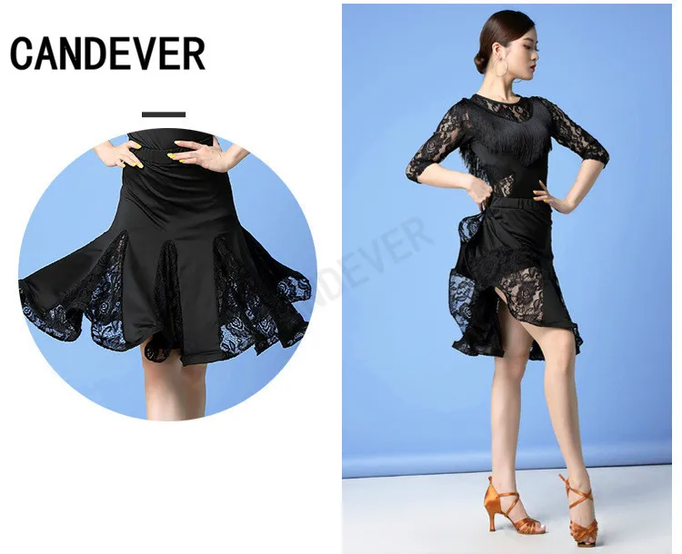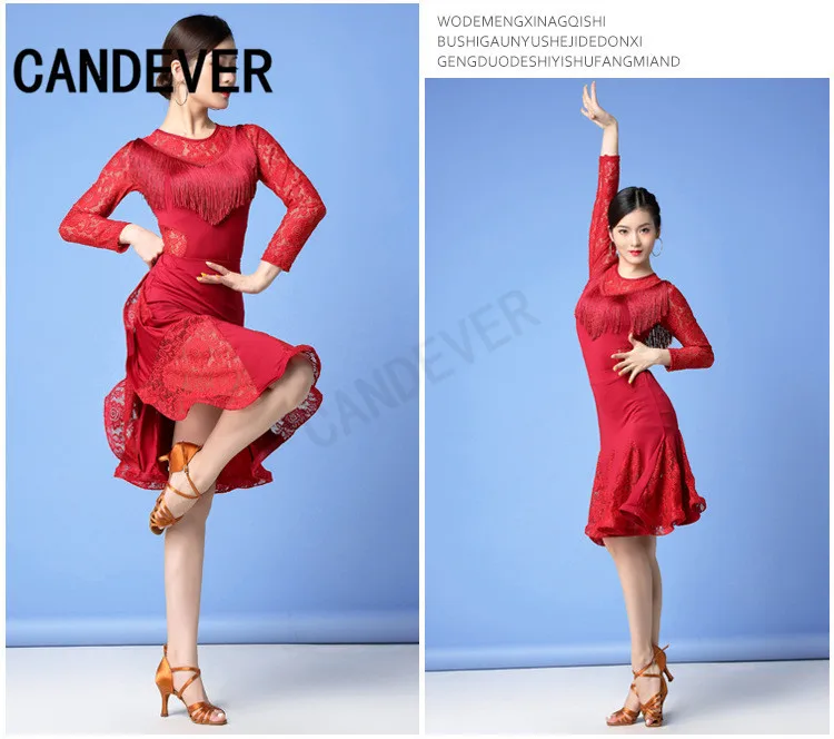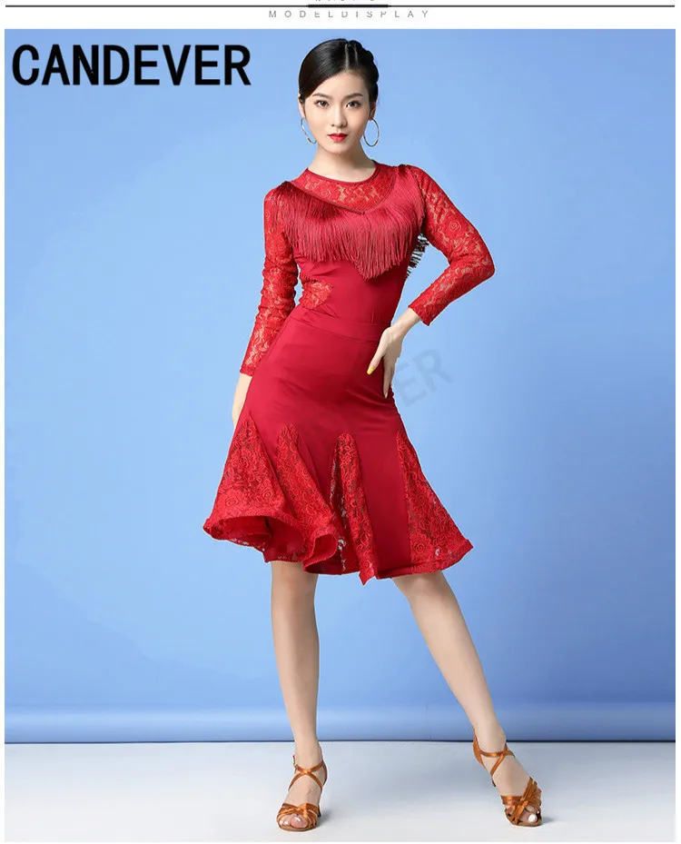 2020 new adult Modern Ballroom Latin Dance Dress lace top skirts tassel Fringe Salsa Tango Dance Wear Performance Stage Wear