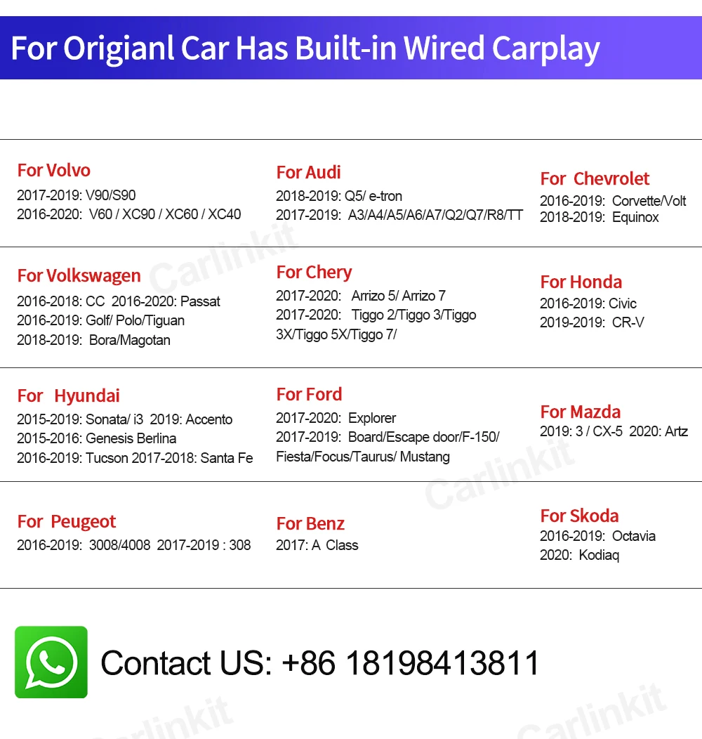 Для Audi 2017 - 2019 A3 A4 A5 A6 A7 Q2 Q7 R8 TT Q5 Q8 Для Benz 2016 - 2019 A-Class /B-Class/ CLA-Class /CLS-Class/E-Class Cabriolet /E-Class Coupe/GLA-Class/GLE-Class/E-Class/ GLS-класс/SL-класс/GLC-класс/S-класс/C-класс Для Peugeot 2016-2019 208 /2008/308S/ 3008/ 4008/ 301 308/ 308 SW/508/5008/Эксперт/партнер Tepee/ Traveller/Rifter Для Porsche 2016-2019 718/Panamera/ Macan/ Cayenne/ 911 Для Skoda 2016-2019 Fabia/Octavia/Rapid/ Superb/ Yeti Для VW 2016-2019 CC /Amarok /Beetle/ Cabriolet/ Caddy /California/Caravelle E-Golf/ Fox/ Golf Cabriolet/Golf SportsVan/Golf Variant/ Golf R /Golf SportWagen/GTI/ Jetta/ Lamando/Multivan/ Passat вариант Поло/Scirocco/Sharan/Tiguan/Touran/Transporter/ Passat/Atlas Crafter/ CrossFox/Gol/ Saveiro/Voyage/ Arteon/ Bora/ Magotan Sagitar/T-Roc Для Volov 2016-2020 XC90 /S90 /V90 /XC60/V60/ XC40 Для Hyundai 2015 - 2016 Genesis Sedan/Azera/ Sonata/ Elantra GT /I10/i30/ i40/Tucso/ Veloster/ Santa F/ Elantra/ Ioniq/ Kona /Santa Fe Sport/Accent/Santa Fe XL/ Palisade